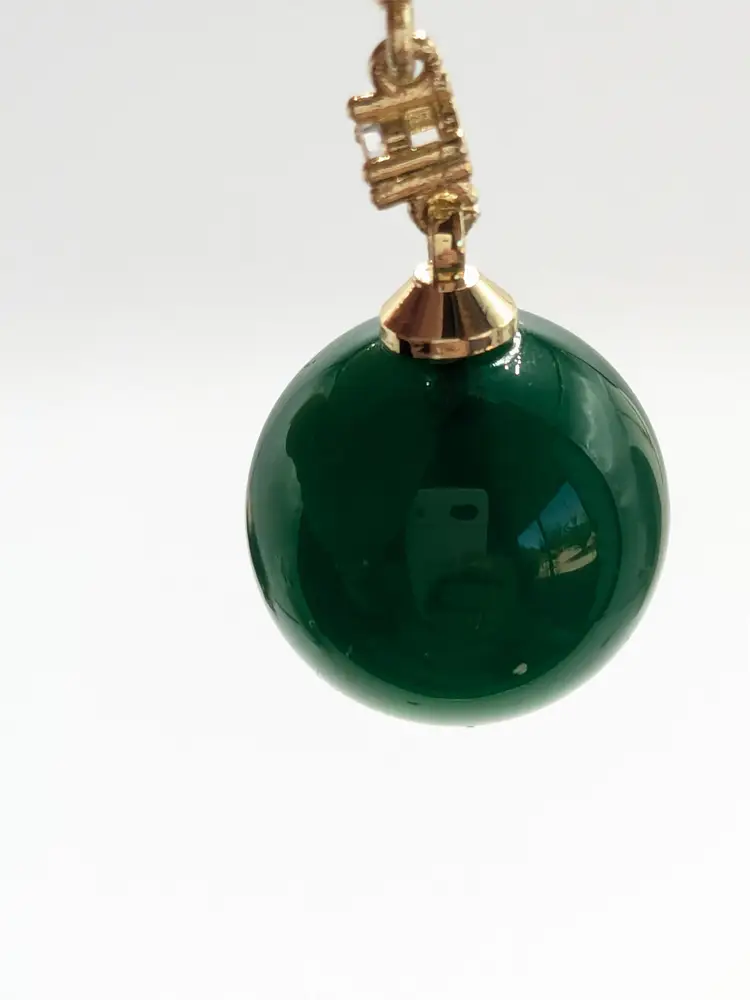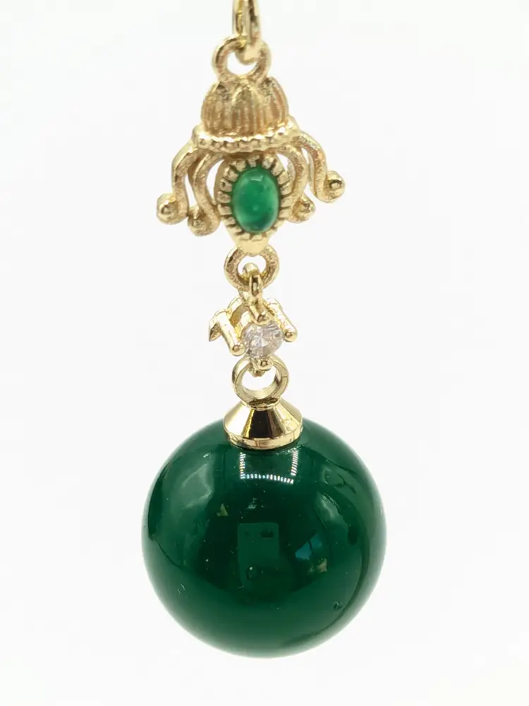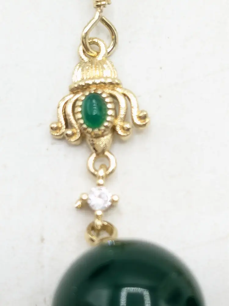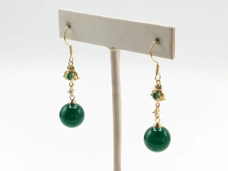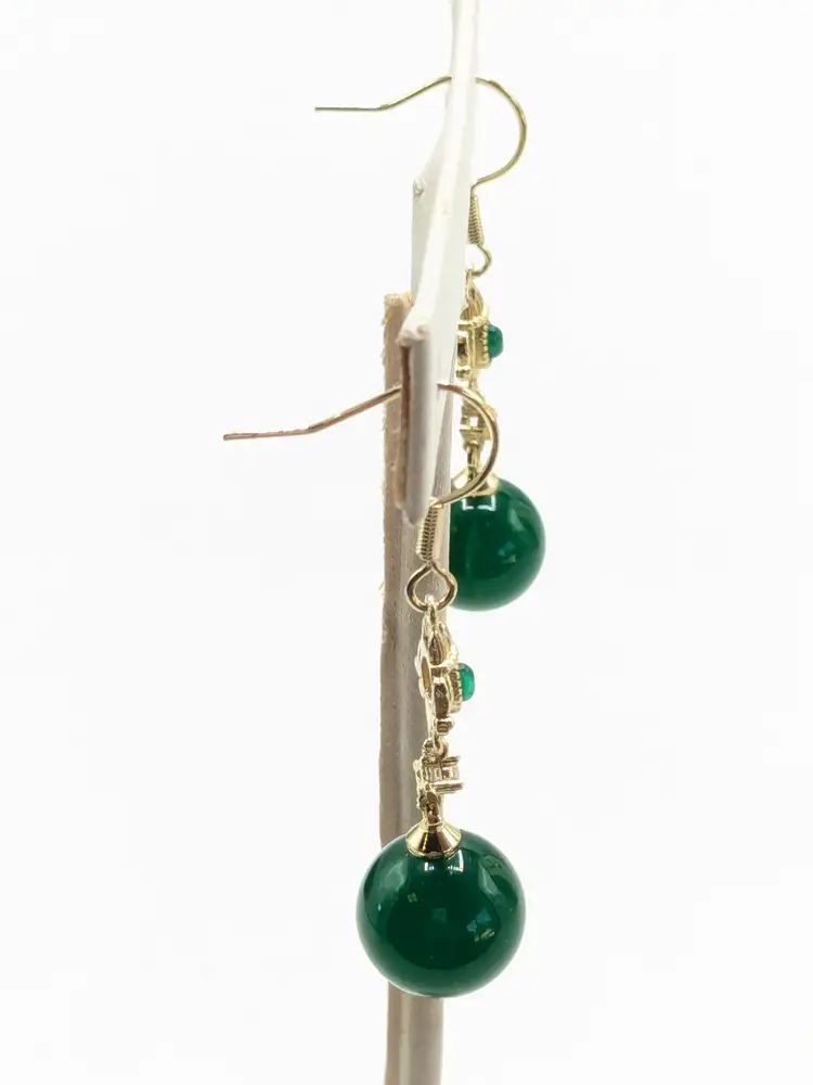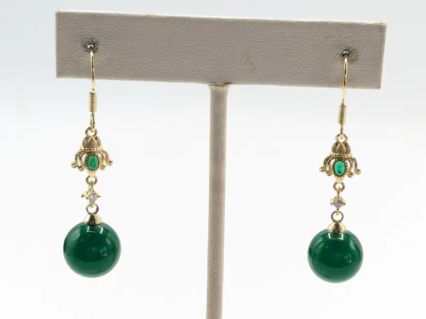 Beautiful! Good condition. No color loss. Green glass is 10mm. Earrings measure 1 3/4" in length. EN2