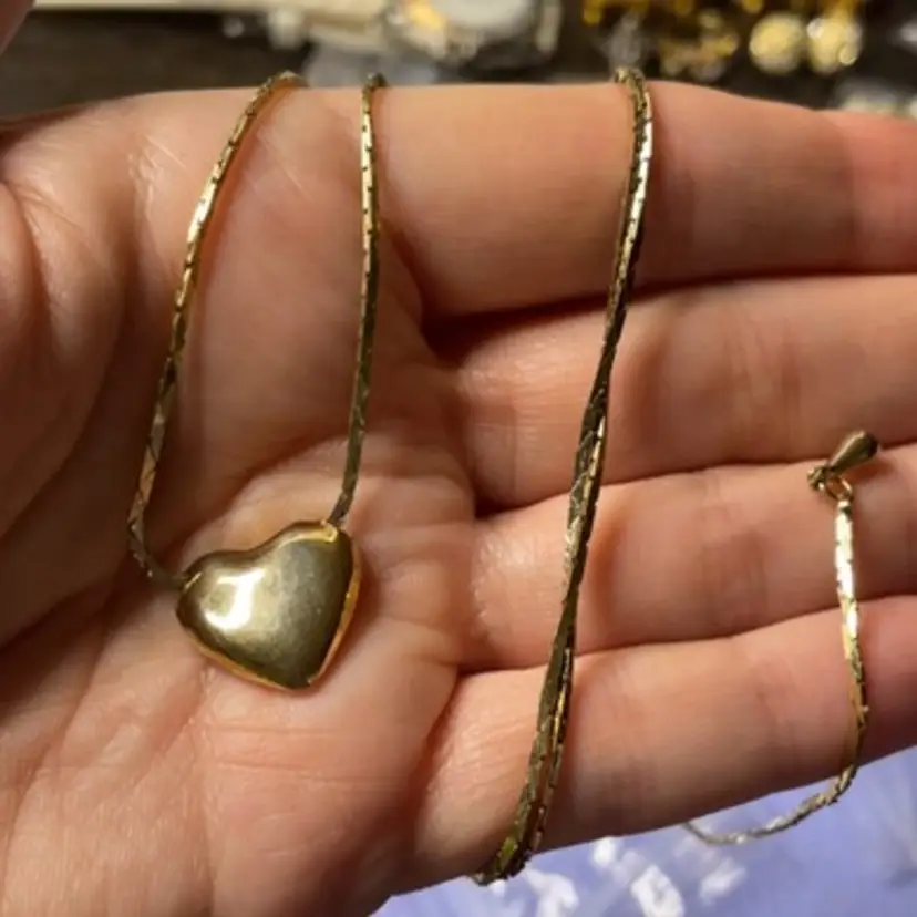 Gold Tone Heart Pendant On 28 Inch Chain No Clasp
