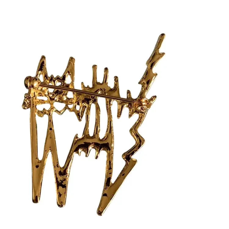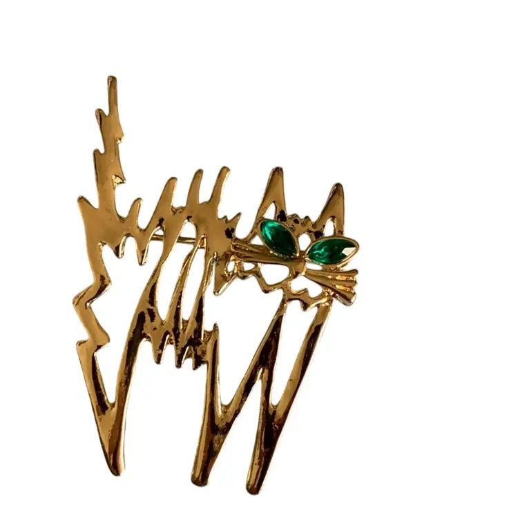 Gold Tone Hissing Halloween Cat With Green Rhinestone Eyes 2” X 1.5”
