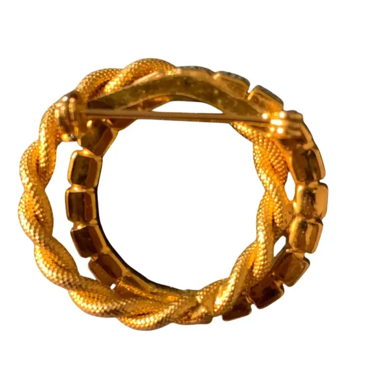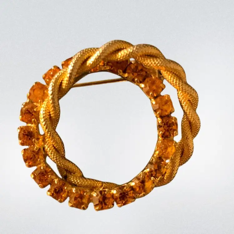 #39 - Gold Tone Interlocked Circles One Amber Rhinestones And The Other Twisted Gold Tone Metals. The