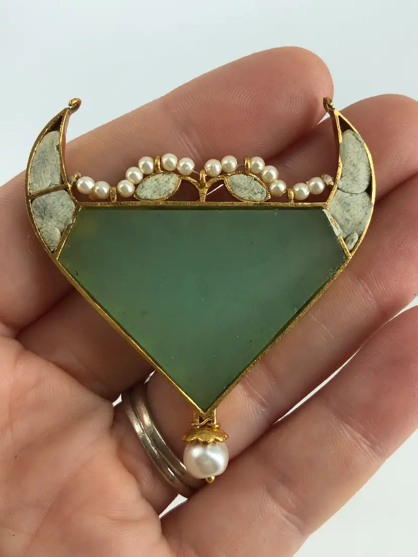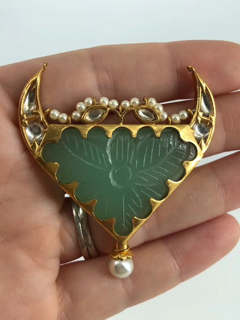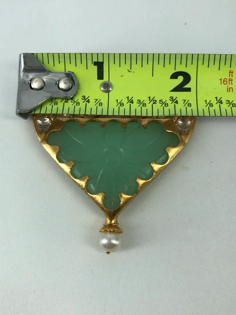 Gold-Tone Jade, Pearl, and Jeweled Necklace Pendant