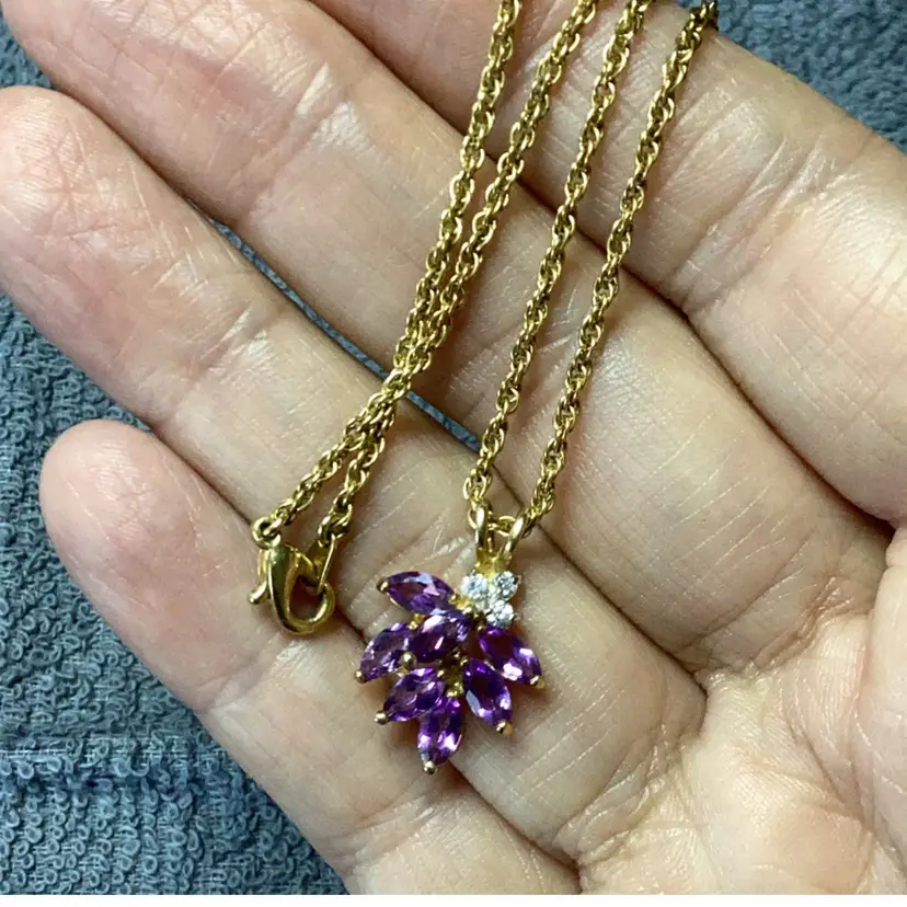 Gold Tone Necklace Amethyst Navettes And CZ 18”
