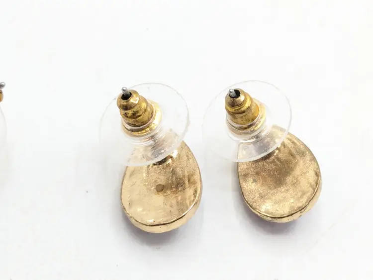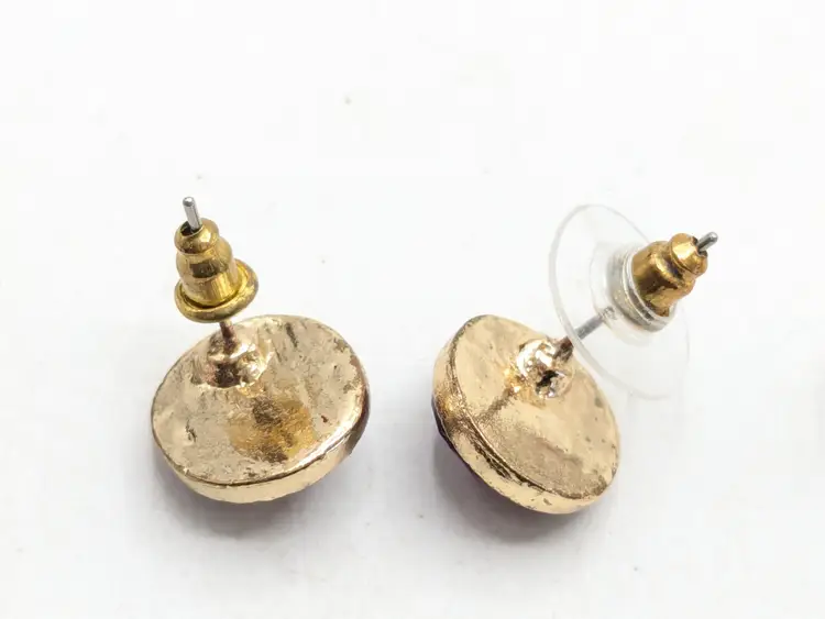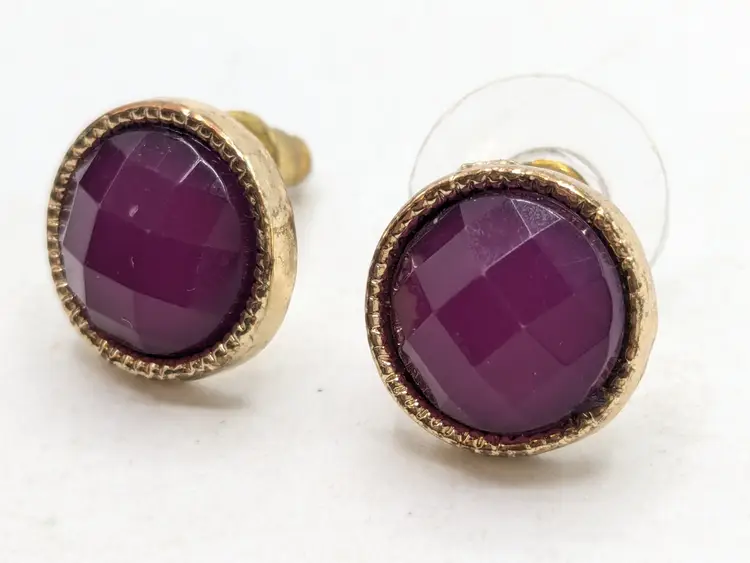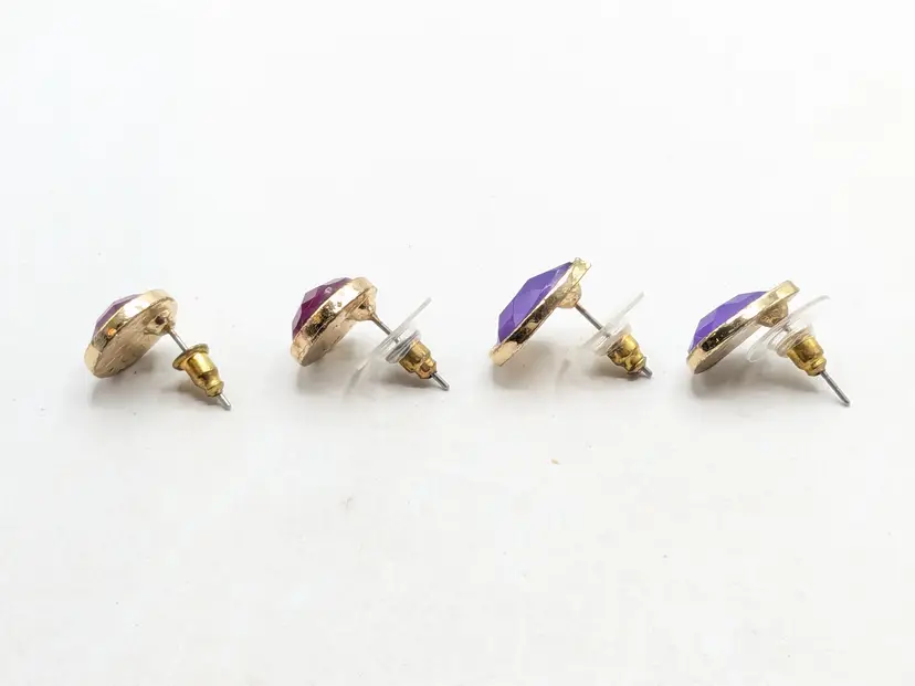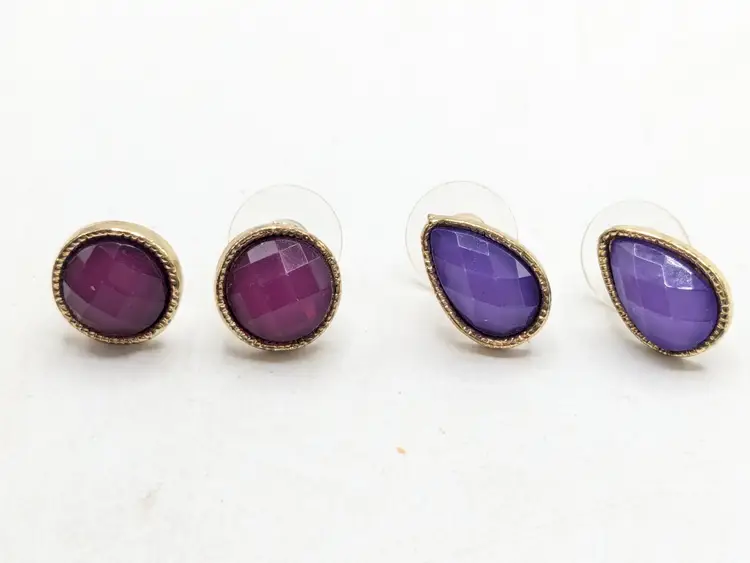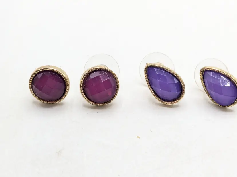 Good condition. This set includes two pairs of faceted stud earrings in vibrant purple and pink tones. Pierced earrings. Measures approximately 1/2". wen