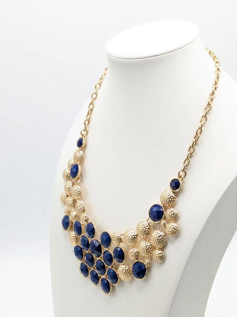 Good condition. Features a stunning combination of blue and gold. Measures 18" in length with a 3" extender. (EN1)