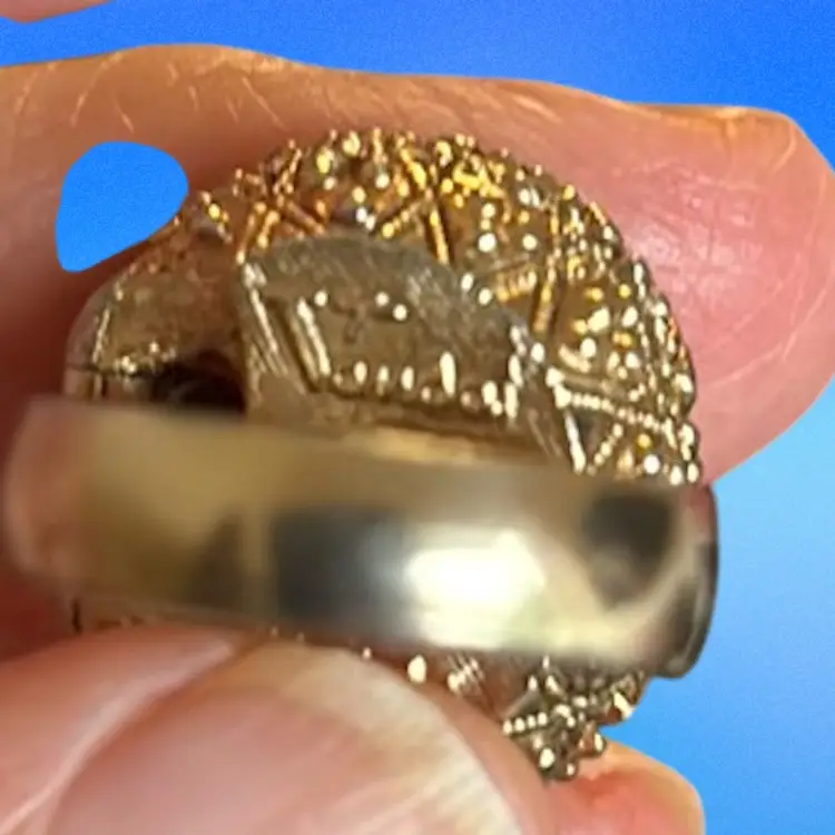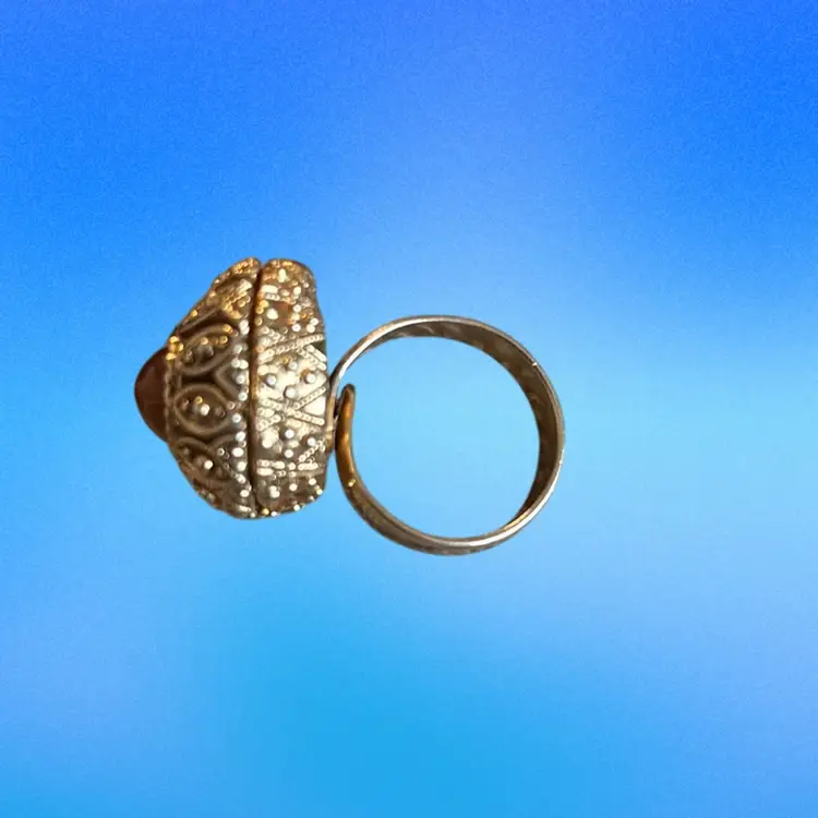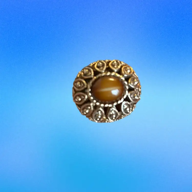 Gold Tone Tiger Eye Adjustable Poison Ring Signed ———- (unreadable) USA