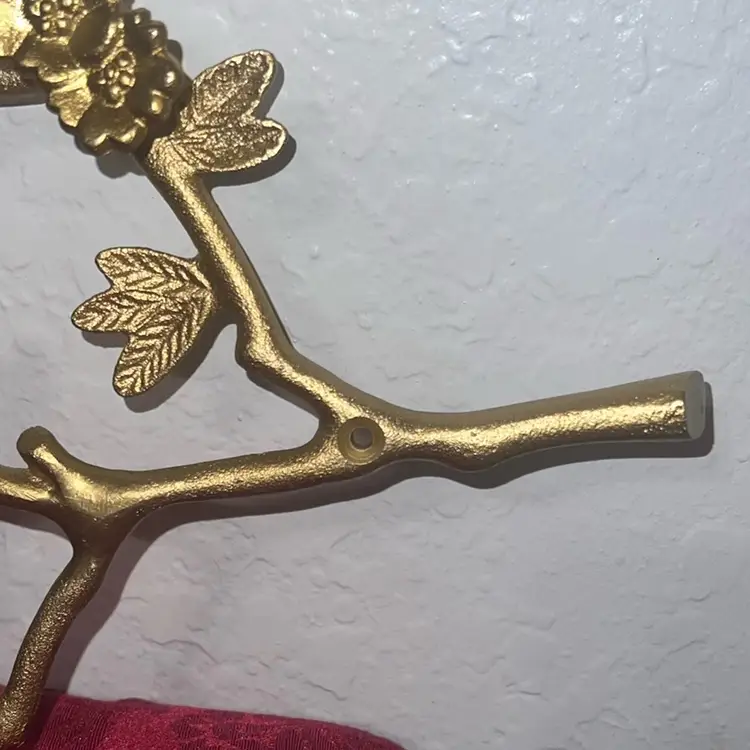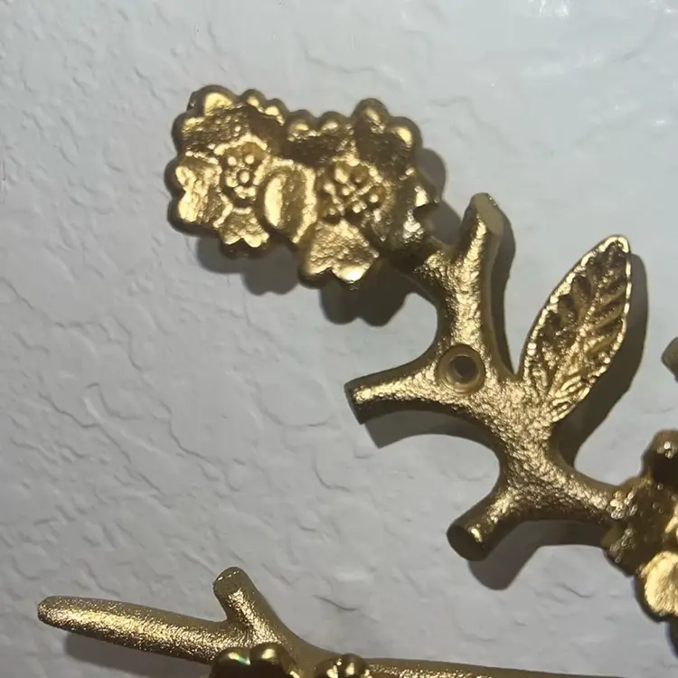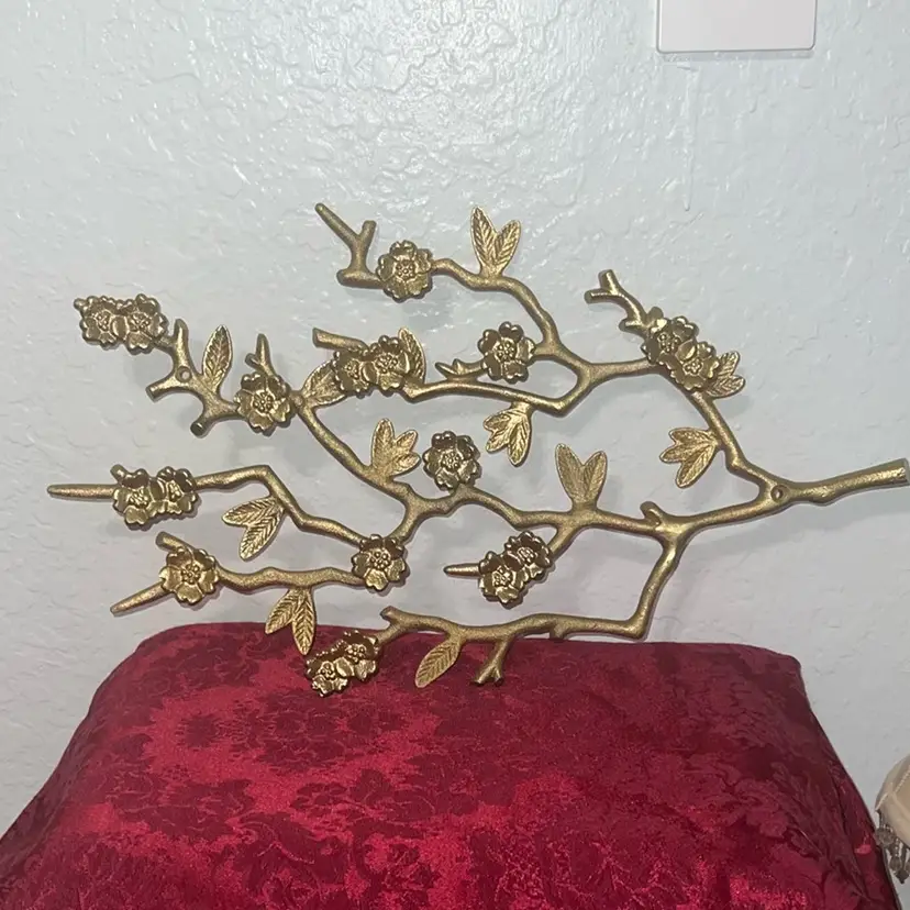 Beautiful gold tone tree branch with flowers wall hanger. Can be hung vertically or horizontally. 17" tall vertical and 10" wide.