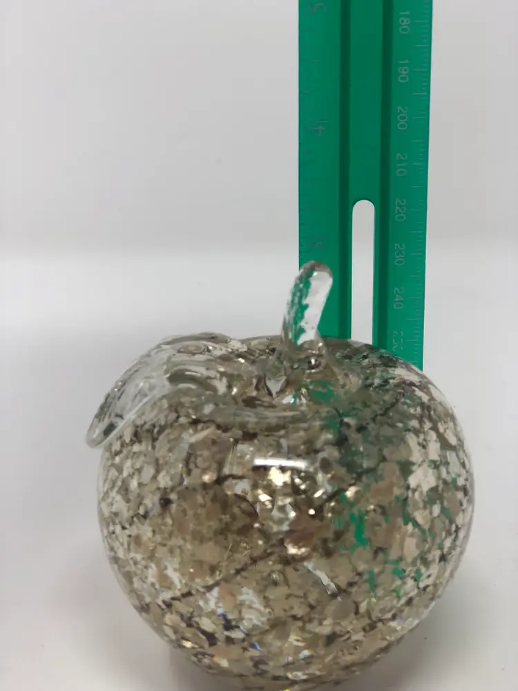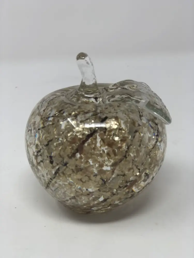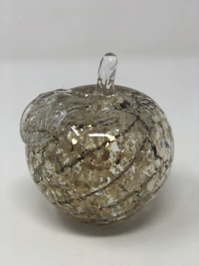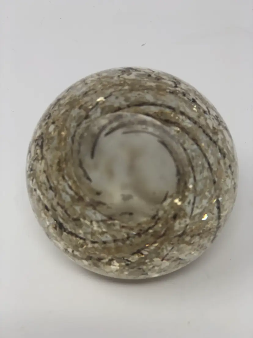 Beautiful flecks of gold with dark swirls. Polished bottom. No chips or cracks. 3” tall