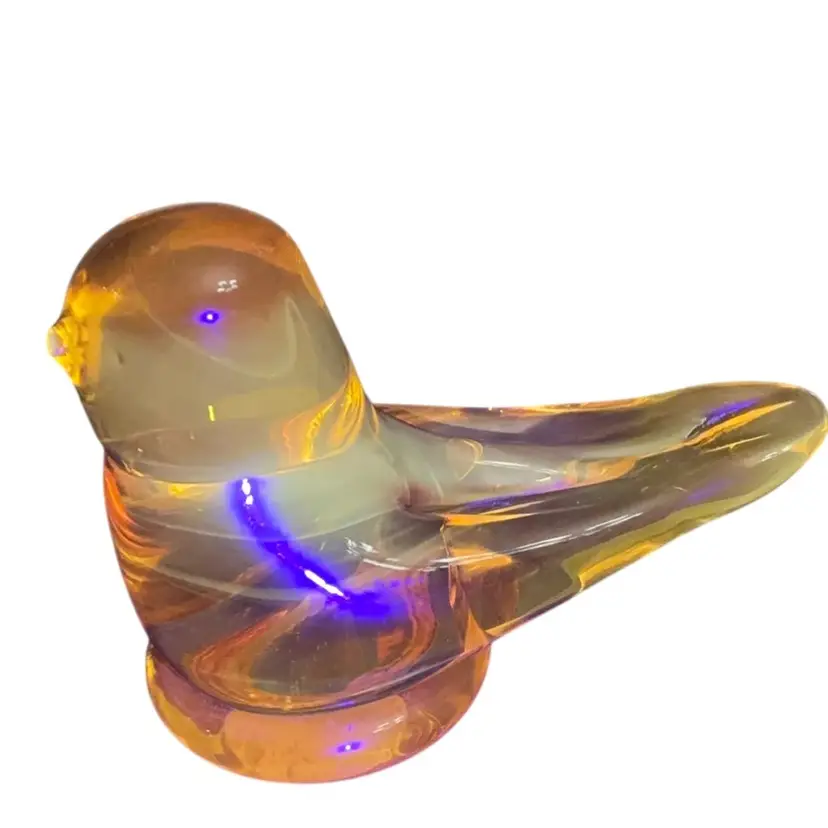 Original stamped hand blown bird signed by W. Ward made in 1991. Has a slight cadmium glow. 4”x 3.”