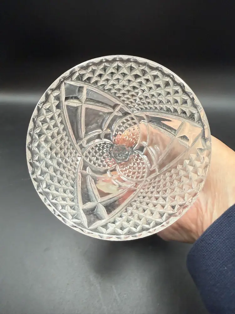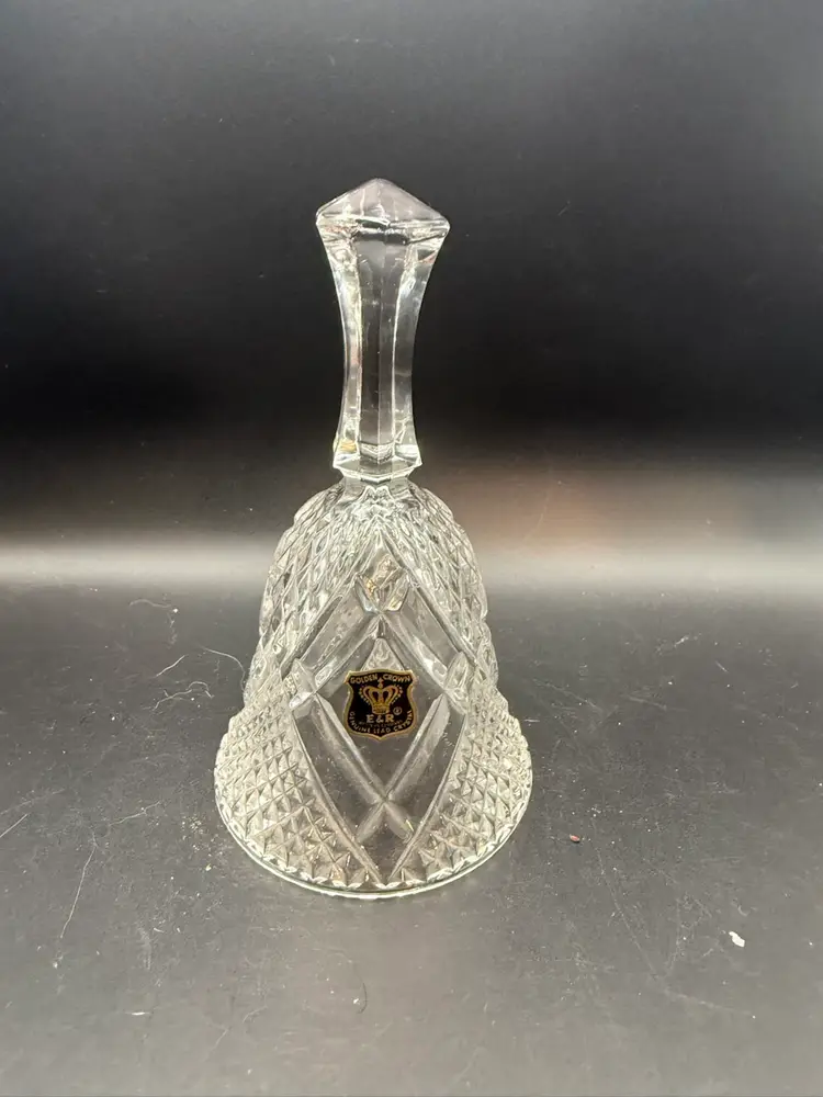 Ebeling & Reuss (E&R) was a company known for importing and distributing decorative glassware, featuring brands like "Golden Crown". This particular bell, made of genuine lead crystal, showcases a classic diamond-cut pattern, a popular decorative motif in glassware from the mid-20th century onwards.