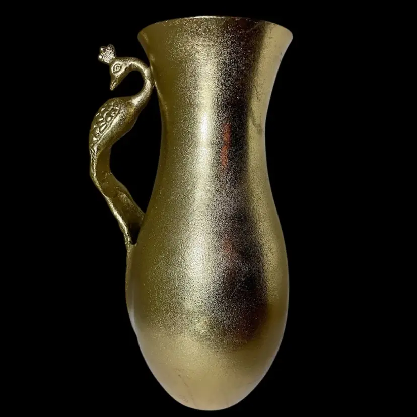 Golden Finish Peacock Motif Pitcher With Handle Condition is Used. Shipped with USPS Mail