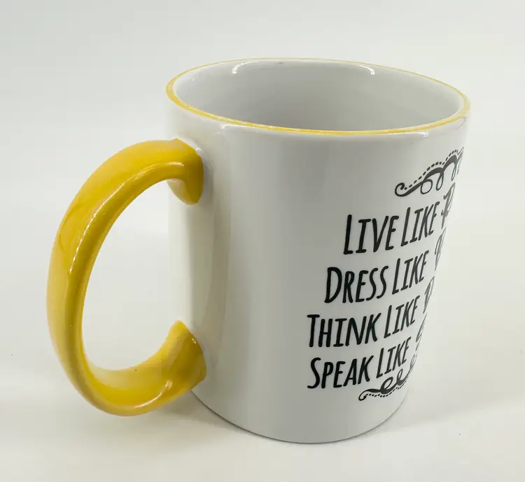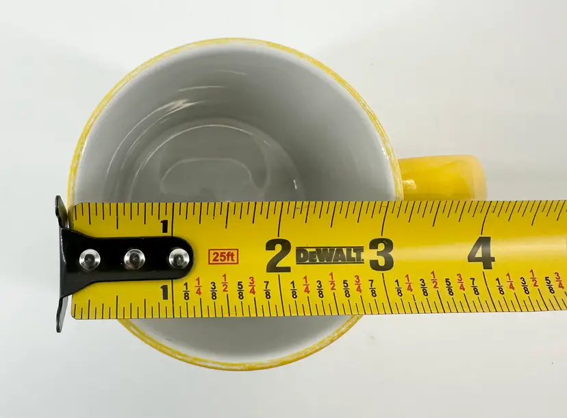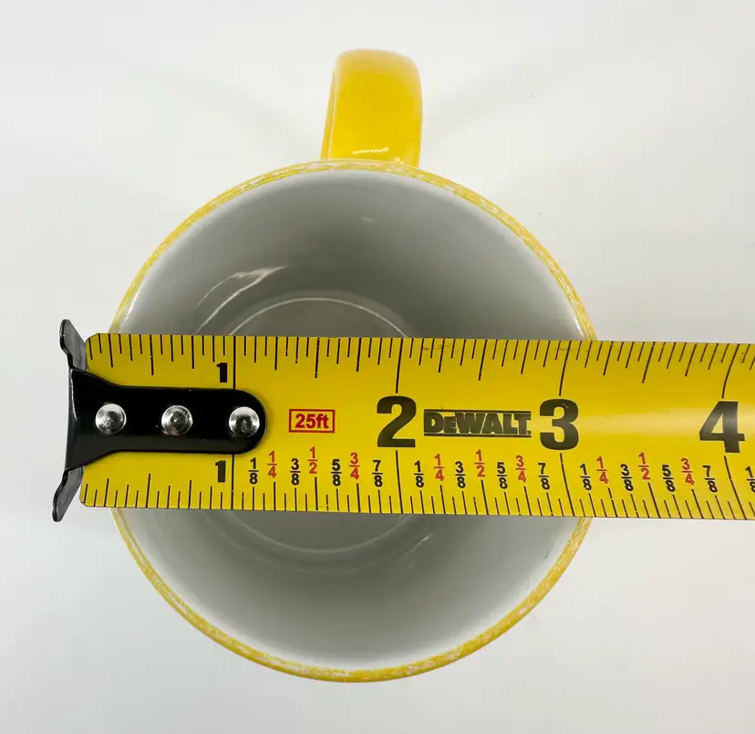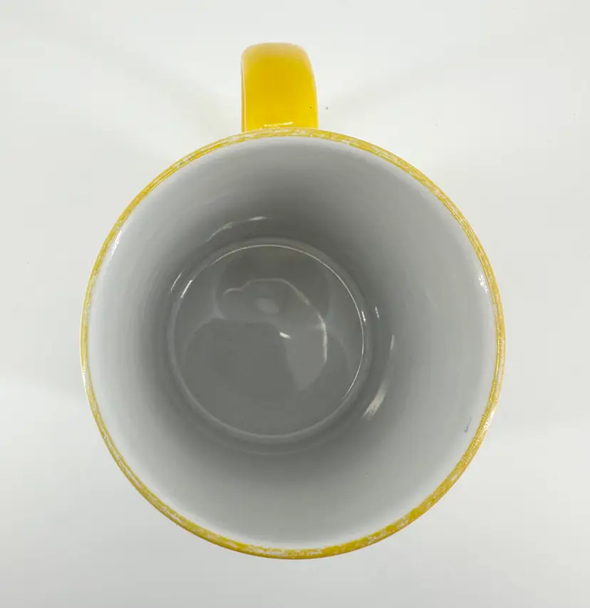 Approximate Size: 3.75" H x 5" W x 3" D Used Condition. No Issues. Utensil Marks , Light Wear. Mug Has Label On The Bottom. *** See Photos For Details