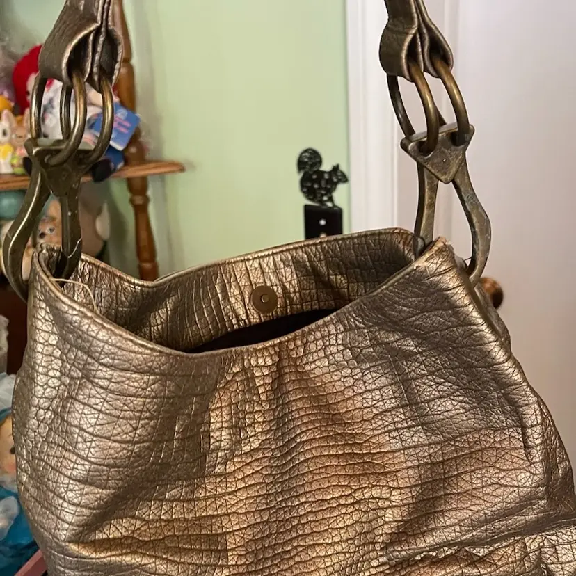 Only used a couple times. Bronze / gold color. A very sharp looking purse! No flaws. PayPal