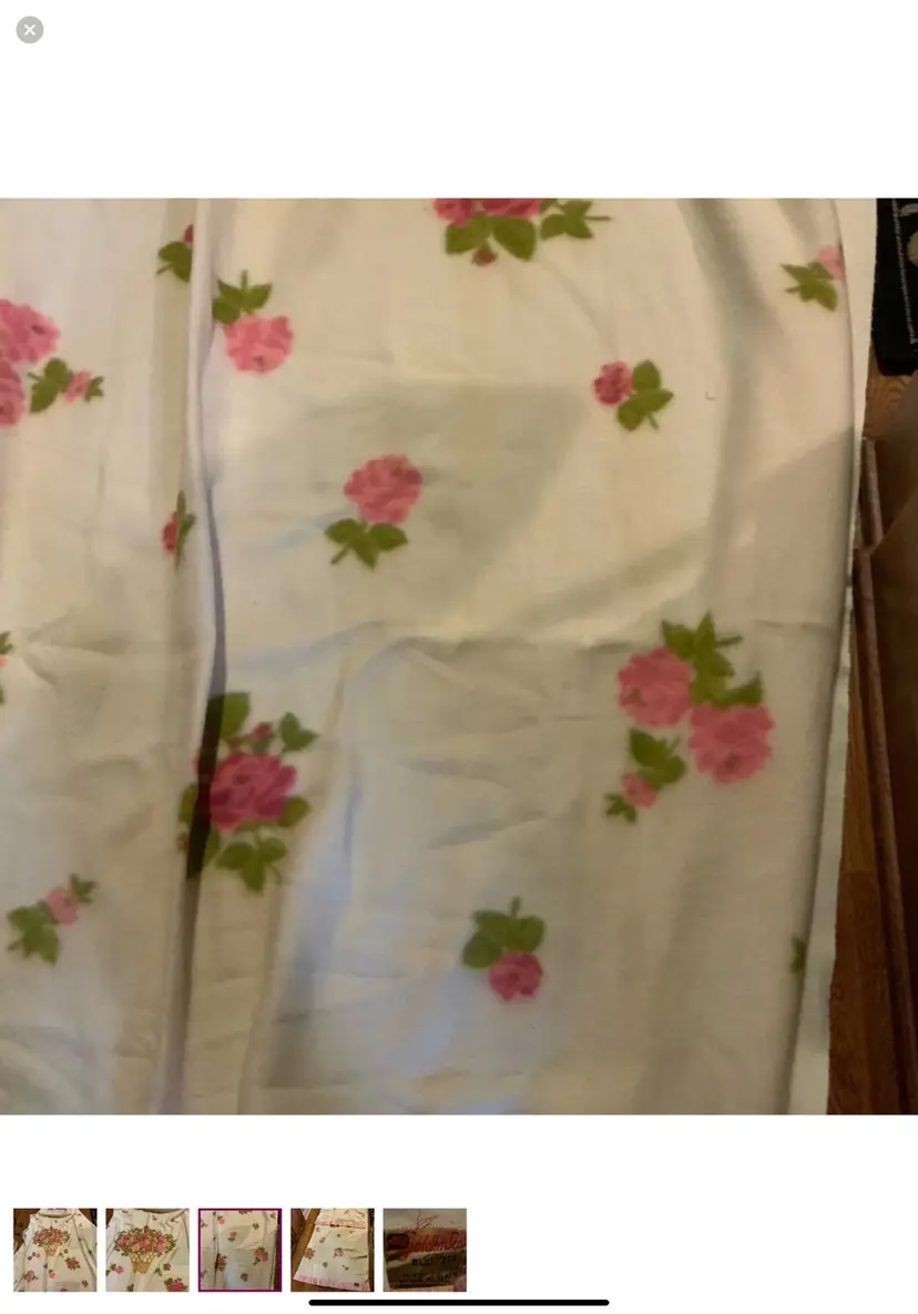 Golden Seal Blanket All over Roses with basket of roses in the middle Pink satin trim 72” wide 90” long Vintage 50’s New old stock