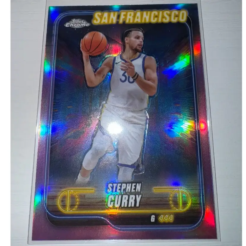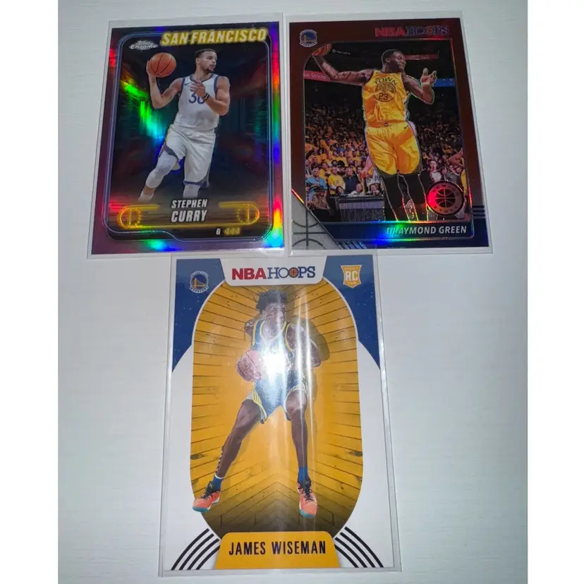This 3 Card Lot Includes: Stephen Curry 2024 Topps Chrome Silver Refractor Draymond Green 2019 Hoops Red Prizm James Wiseman 2020 Hoops Purple
