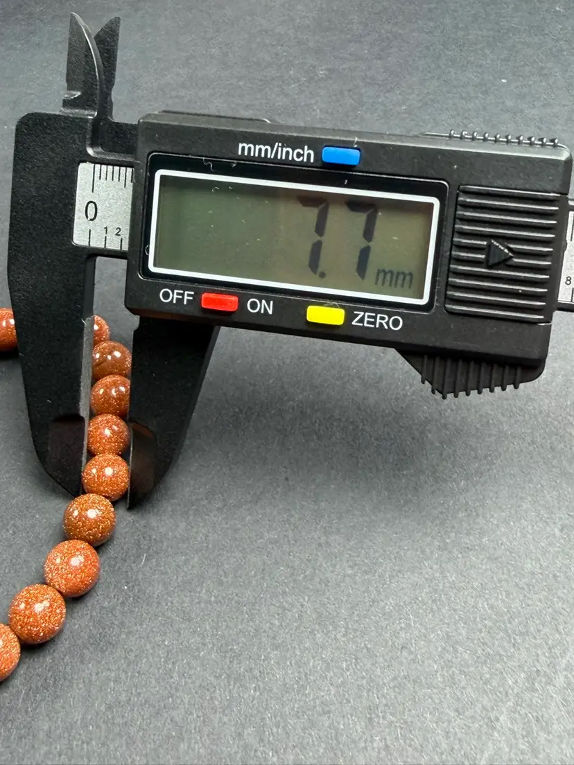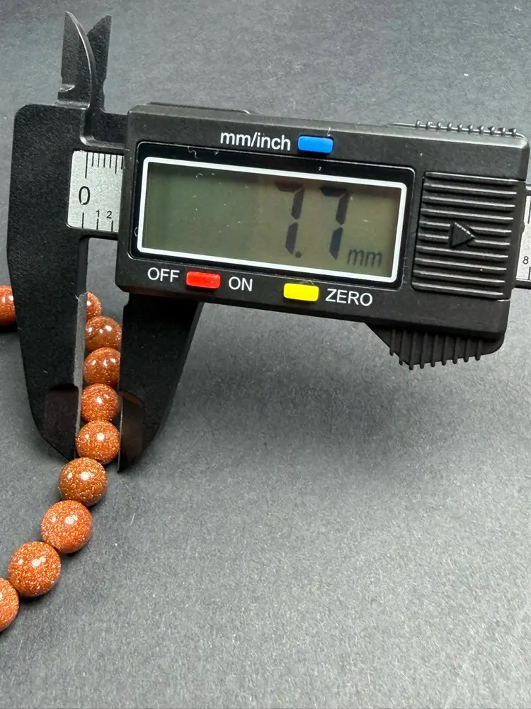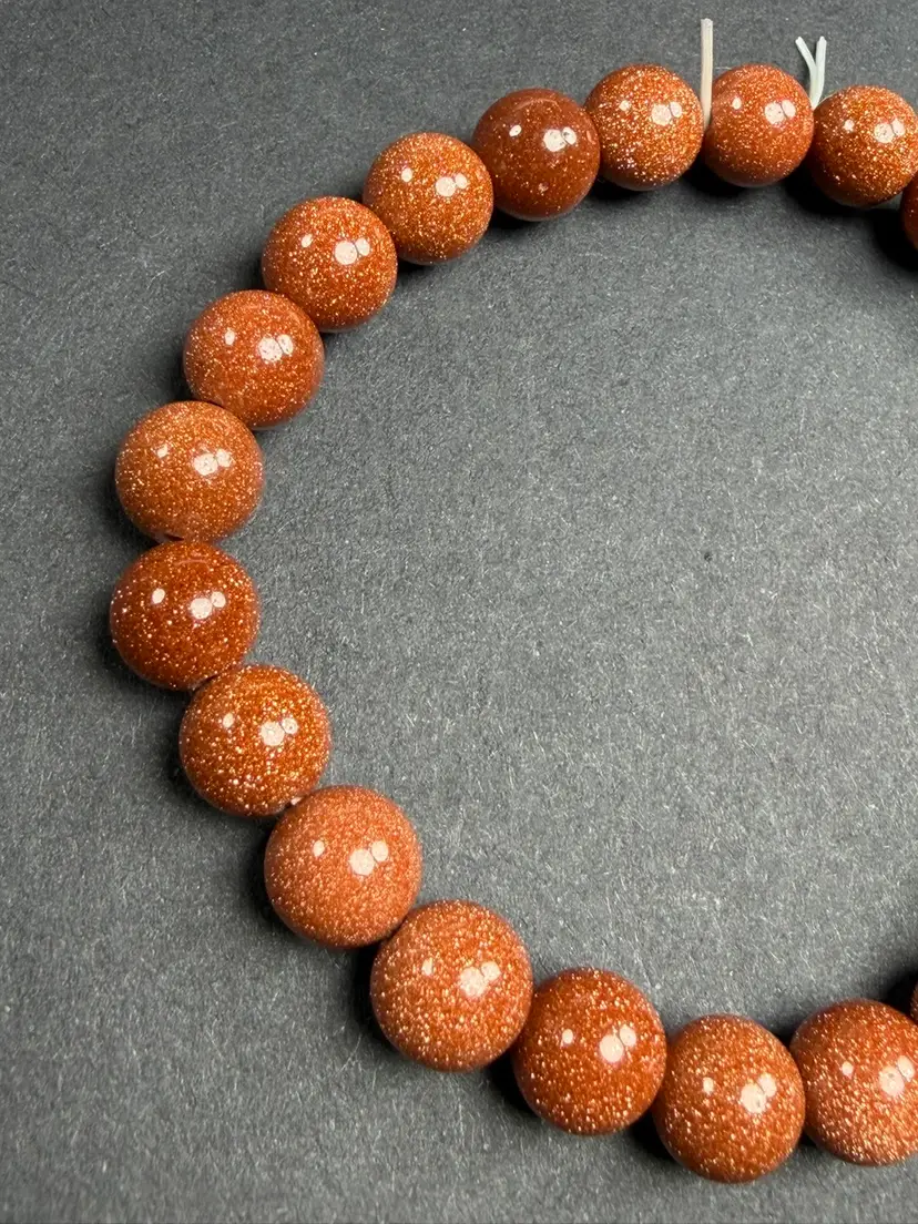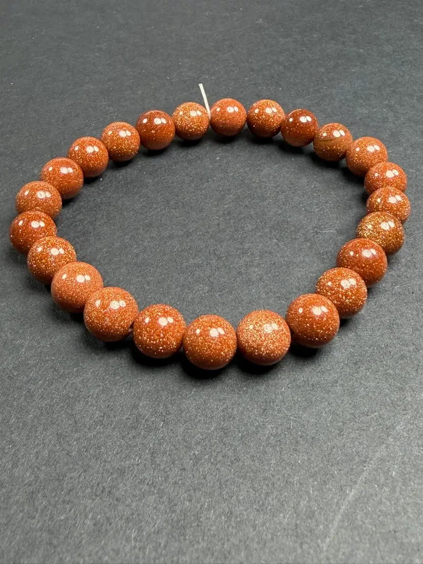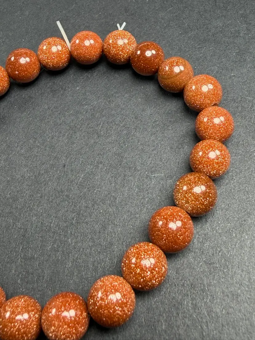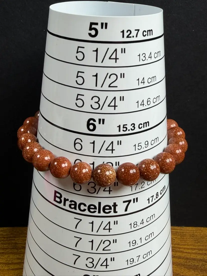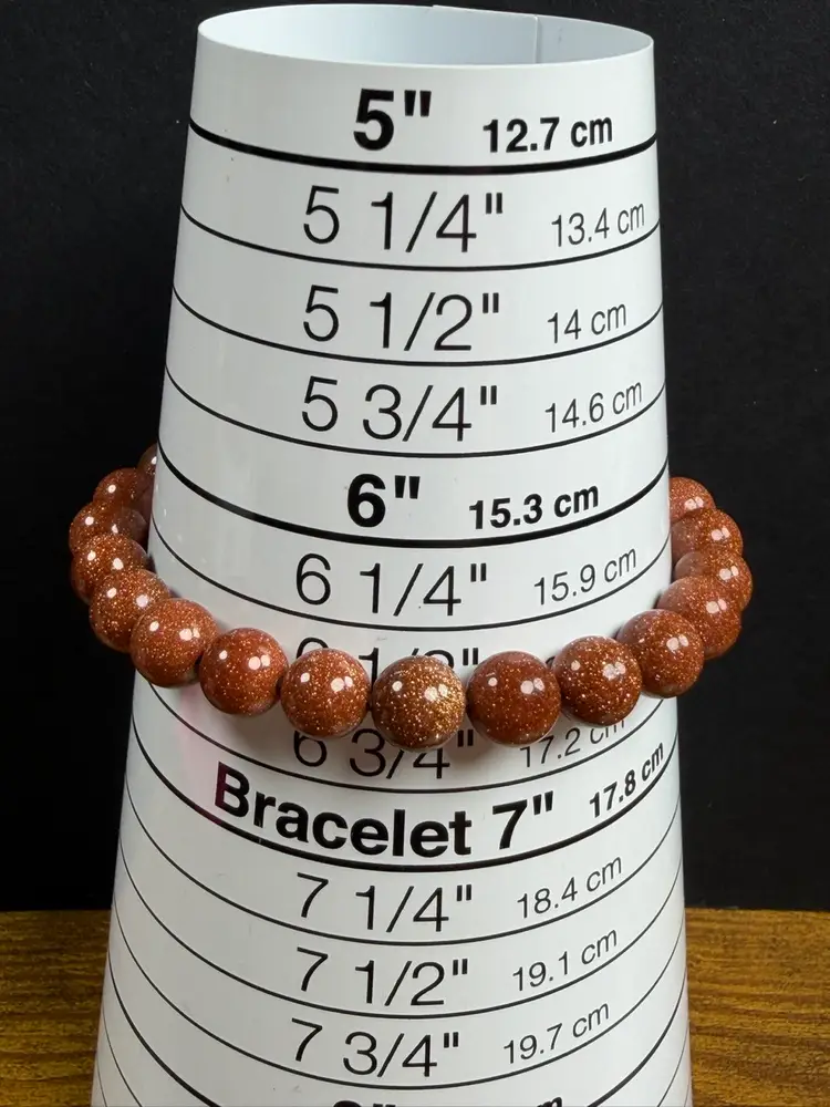 This bracelet is in new condition. It has Goldstone glass 7.7mm beads. The bracelet is a stretch that can comfortably fit 6.5-7" wrist. You will receive the exact bracelet shown.