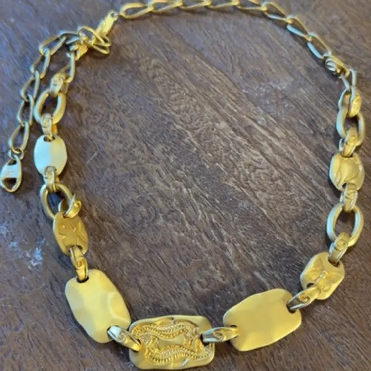 Goldtone Brushed Metal Sea Theme Necklace Up To 24”