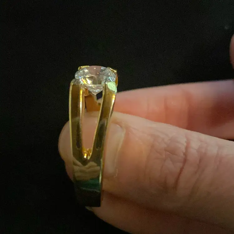 Goldtone Open Sides Faux Diamond Ring Size 13