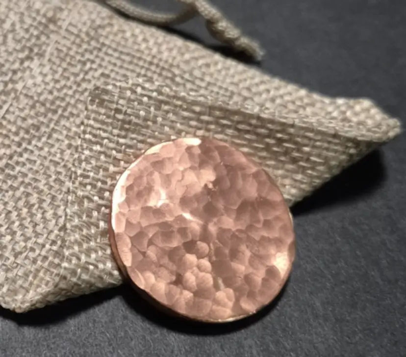 Discover the perfect blend of craftsmanship and style with "Hit em Well" Brand Ball Markers, an emerging Midwest company dedicated to elevating your golf game. Our hand-hammered copper golf ball markers are crafted from high-quality copper, each one meticulously shaped to create a unique, textured finish that shines on the green. Personalize yours with custom initials engraved on the back, making it a distinctive accessory or an ideal gift for golfers. Durable and brimming with rustic charm, these markers reflect the passion and pride of our Midwest roots. Mark your spot with "Hit em Well" and swing with confidence! Size is 1.25" diameter and 1/8" thick.