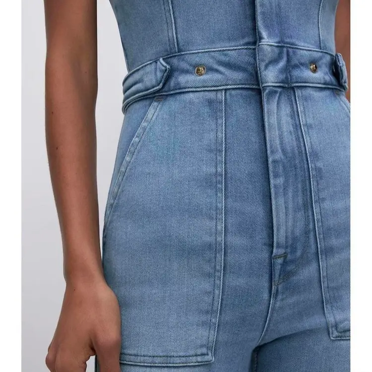 Obsessed with this Good American denim jumpsuit 🤍 Super flattering, snatched waist, and structured fit. Gives effortless cool-girl vibes.