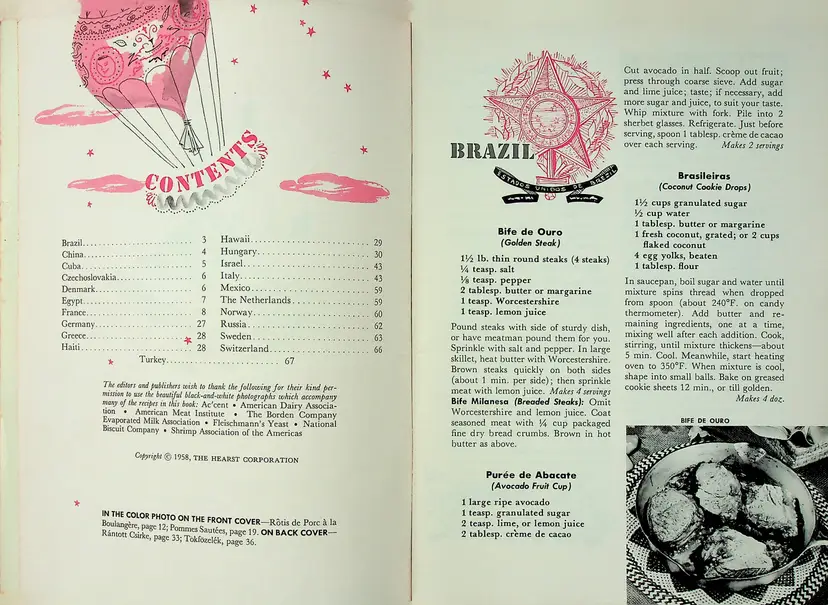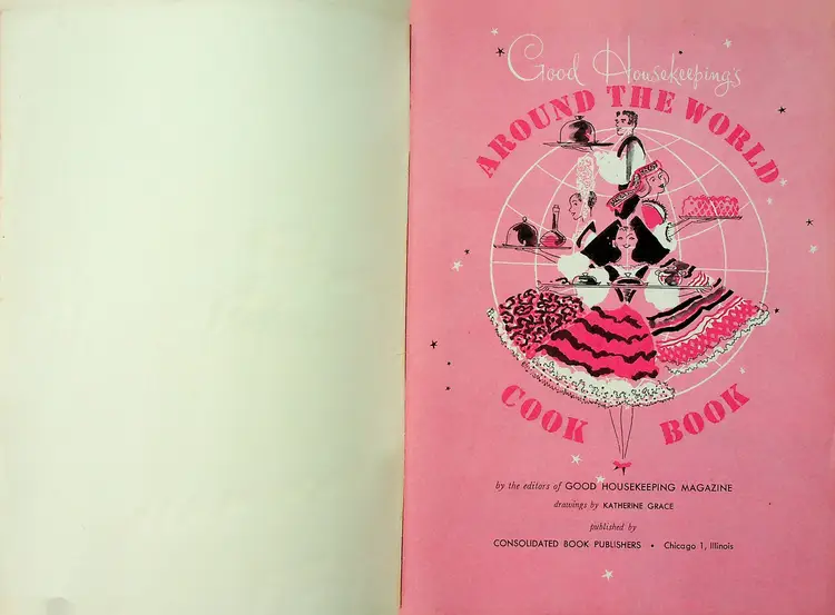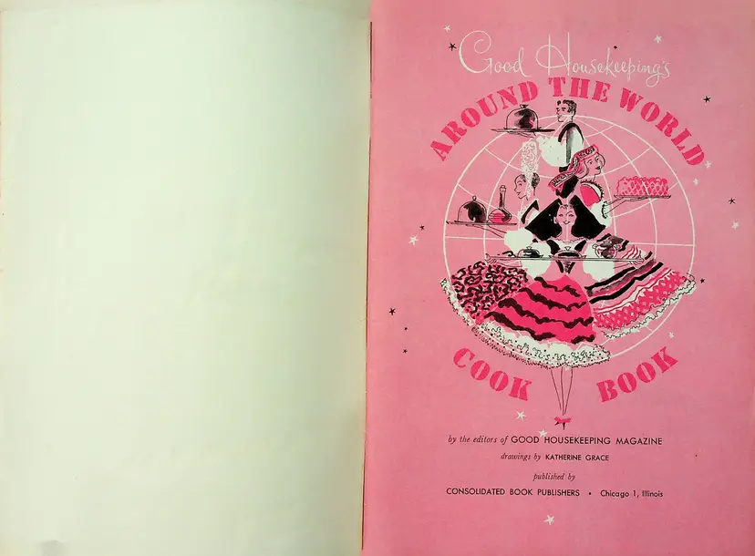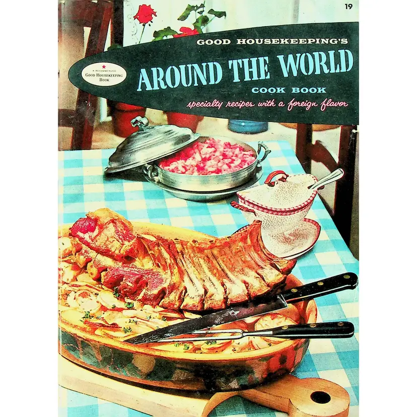 This "Around The World" softcover cook book from Good Housekeeping features specialty recipes with a foreign flavor. It includes recipes from 21 countries including Brazil, China, Cuba, Germany, Norway and Russia. Recipes include soups, main dishes, side dishes and desserts.