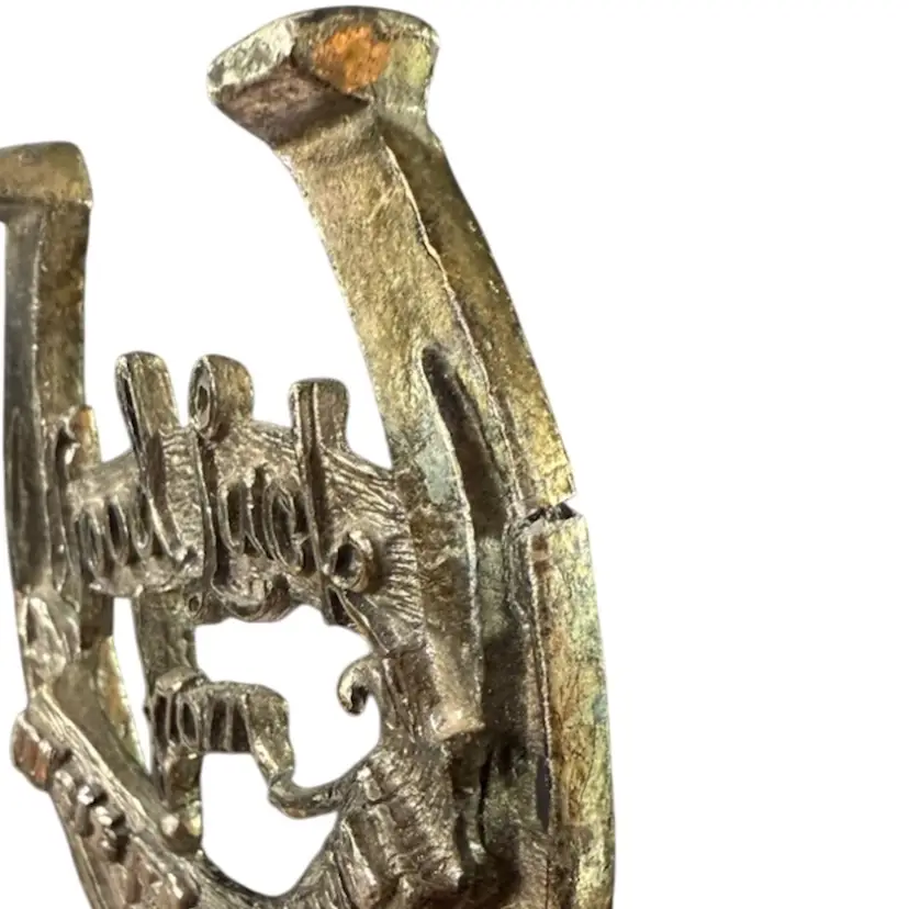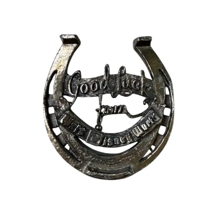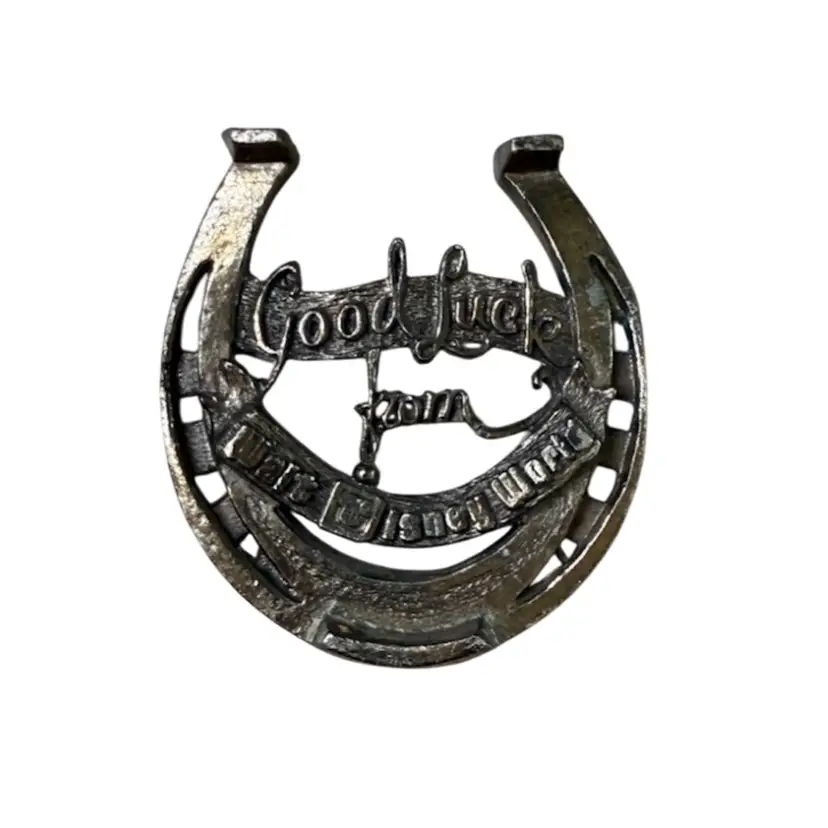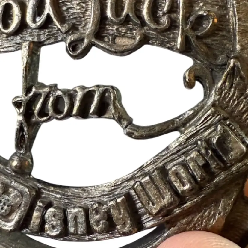 3”x3.5”. From the 1970’s I believe. Has a couple of points where the metal has cracked, seen in pics. Has Walt Disney productions stamp on backside.