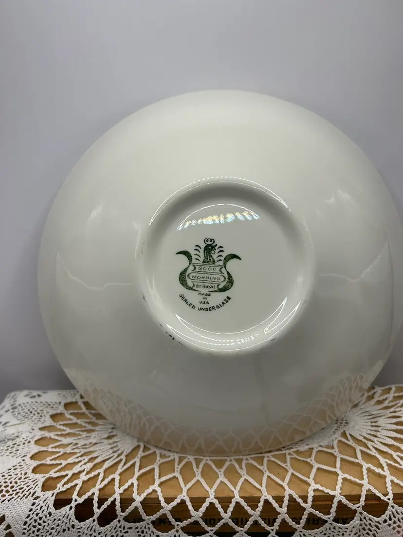 Good Morning By Royal Made In The USA Sealed Under Glaze Rooster Serving Bowl