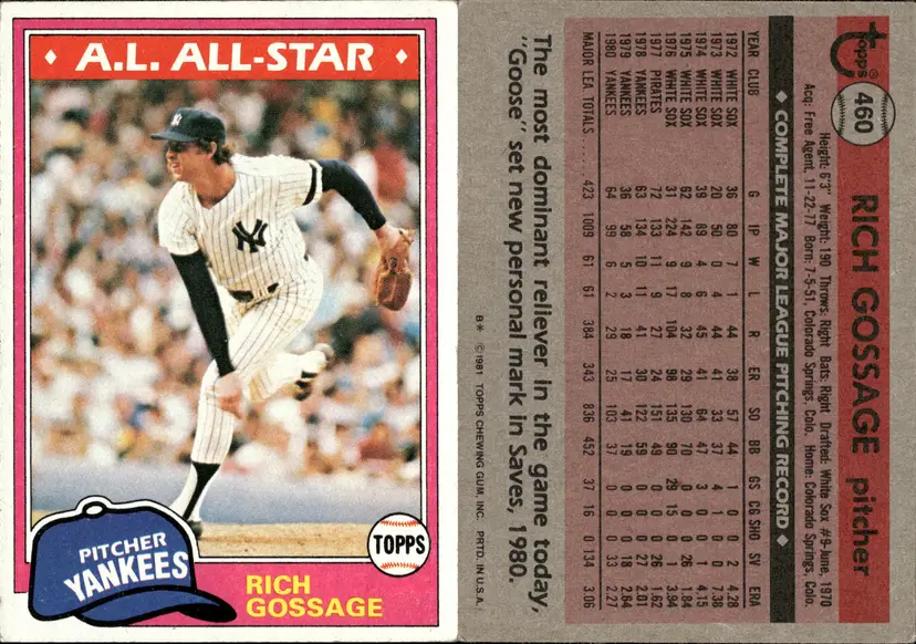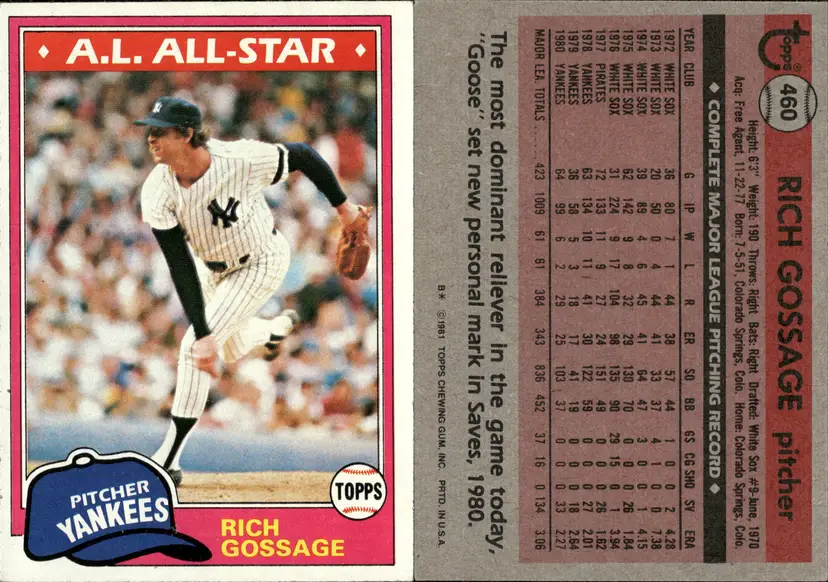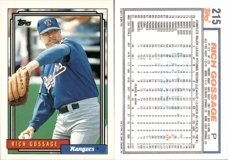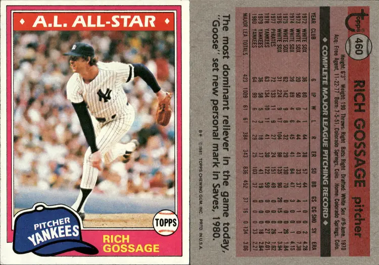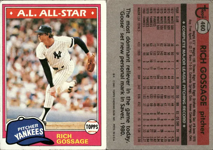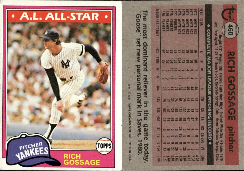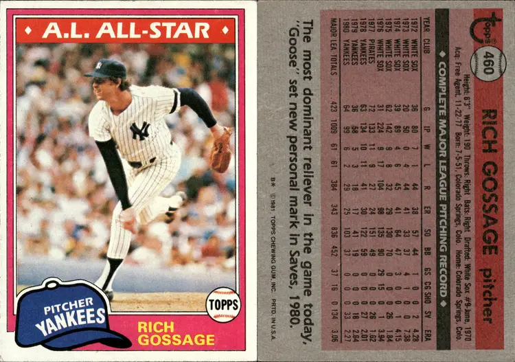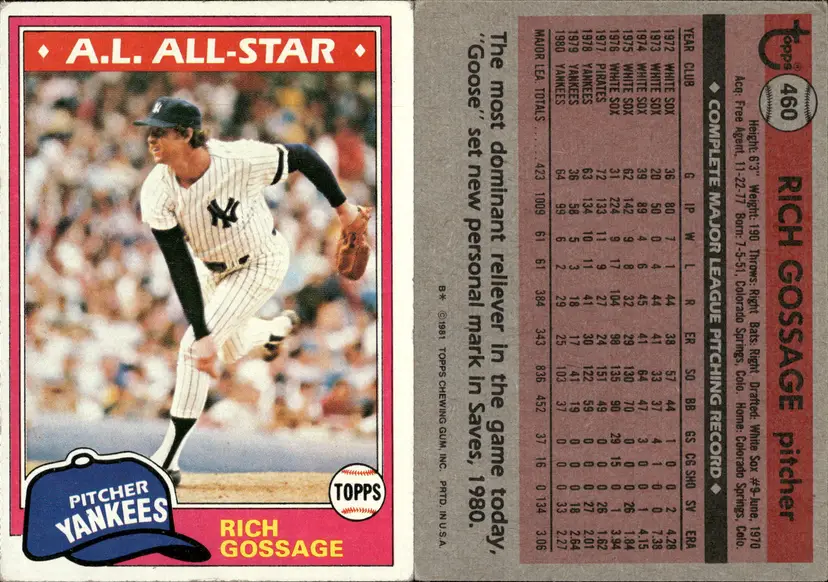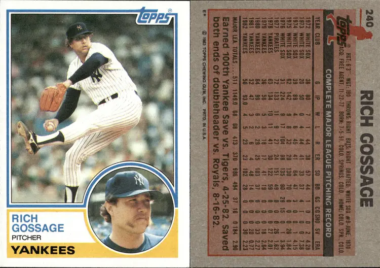This lot contain 22 Baseball Cards of Hall of Famer Goose Gossage