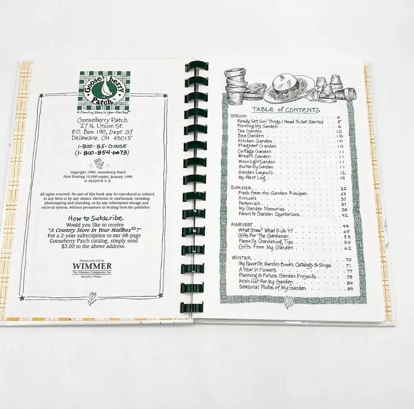 Goose Berry Patch Bumblebees & Butterflies Garden Journal Spiral Hardcover 1995