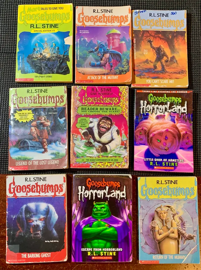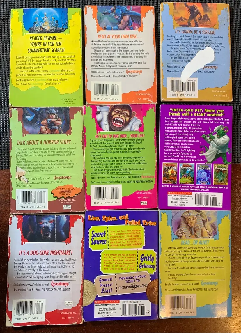 Lot of 9 books, some tears on outside of a couple as shown in photos but no missing pages in any of them. Very minor writing like name on front of one.