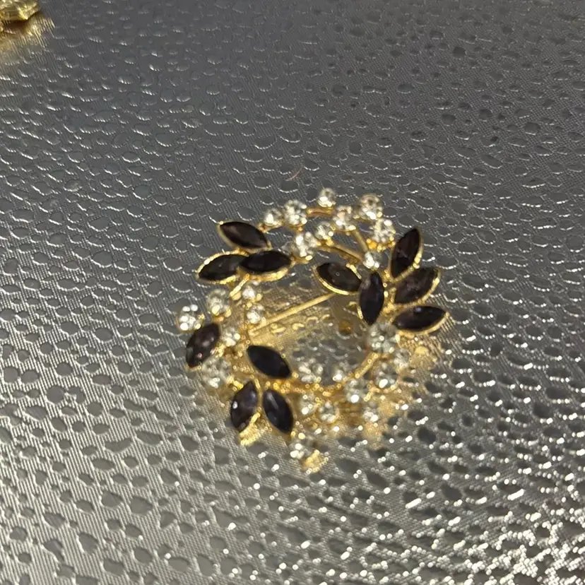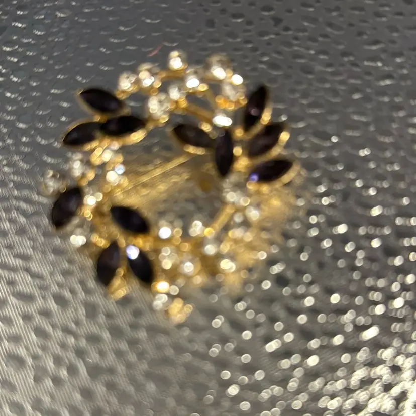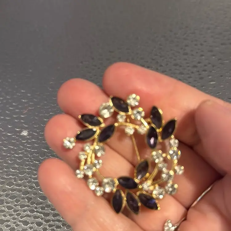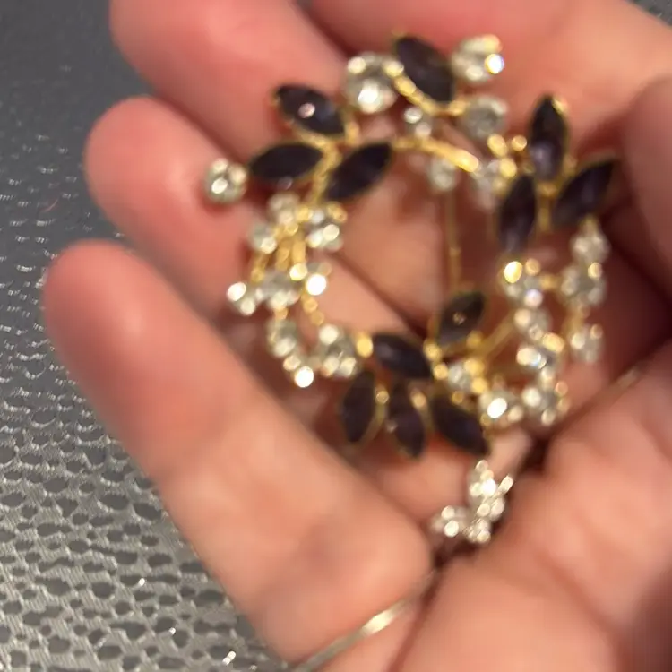 Gorgeous Brooch by gyn & joy floral wreath it has purple stones and faux diamonds.