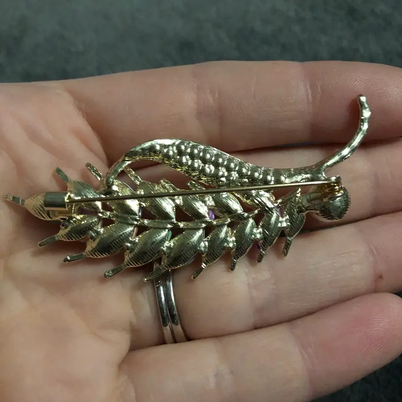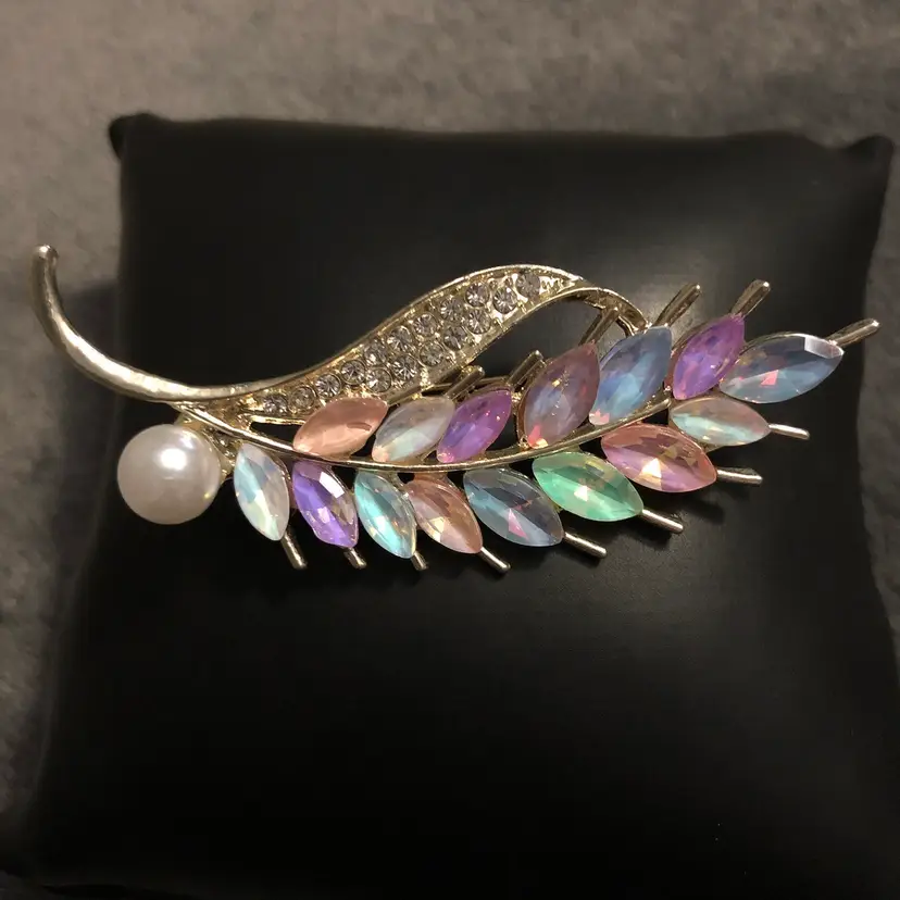 I love the colors of this stunning brooch No missing stones Does not come with the jewelry stand