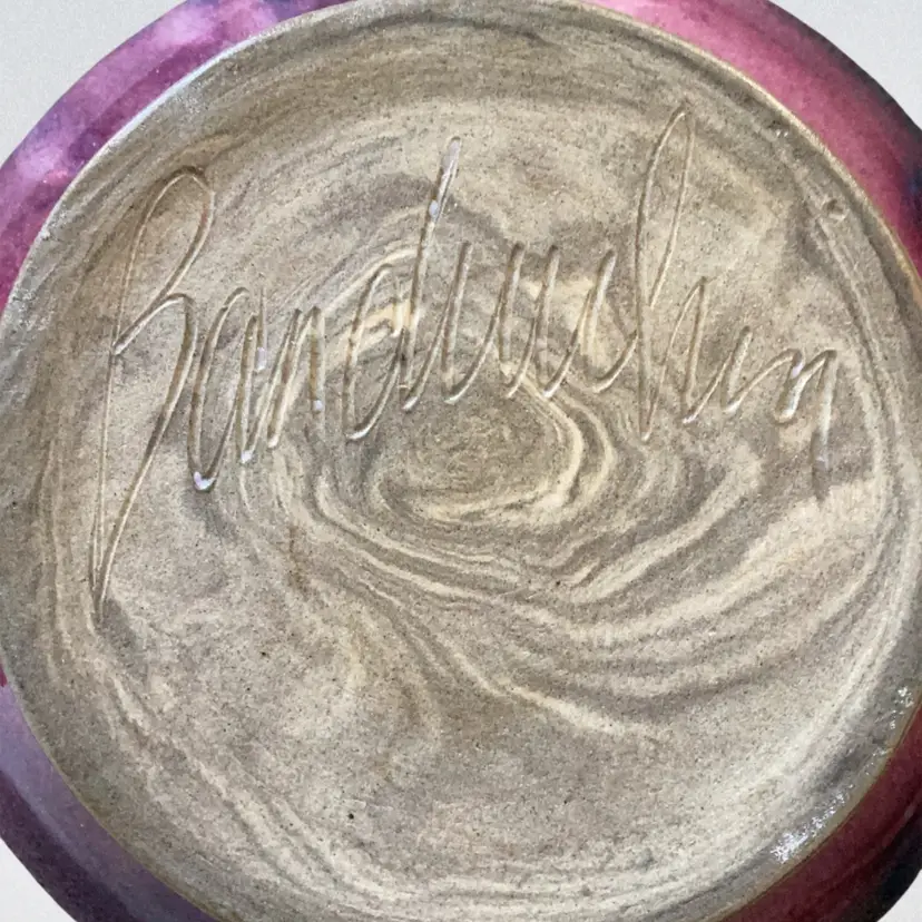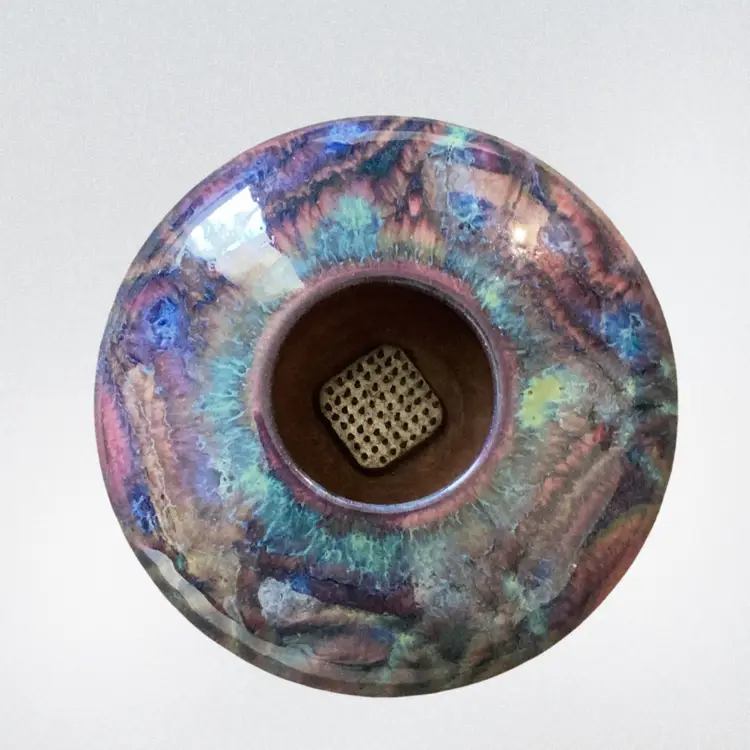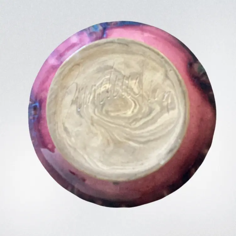Gorgeous Ikebana Stout Pottery Vase With Amazing Blues And Purples And Pinks Signed Banduulun