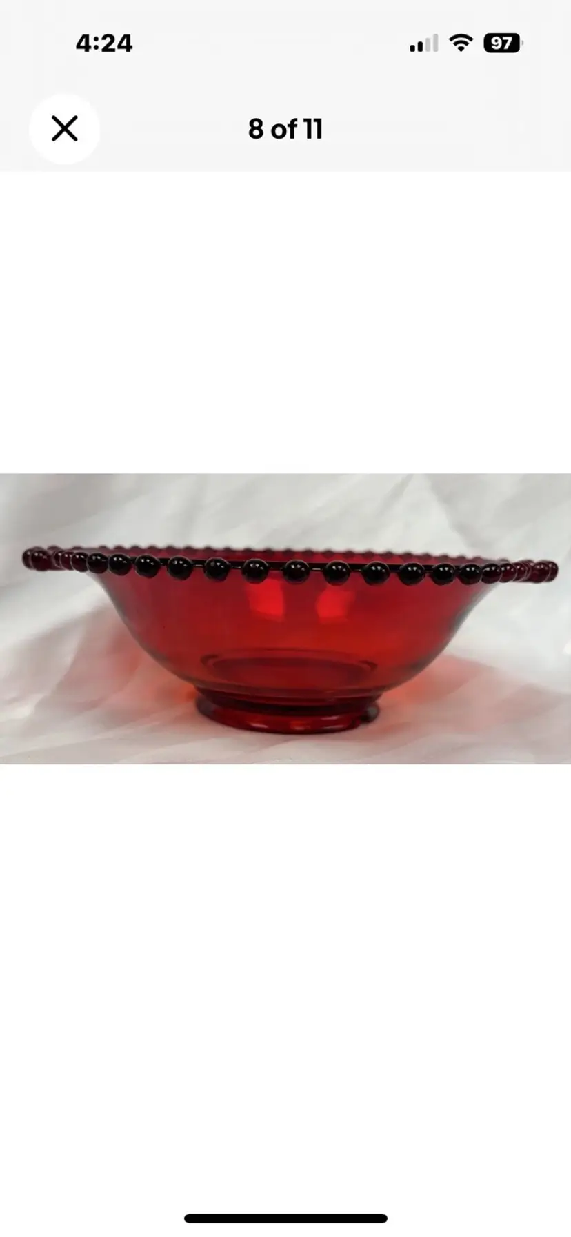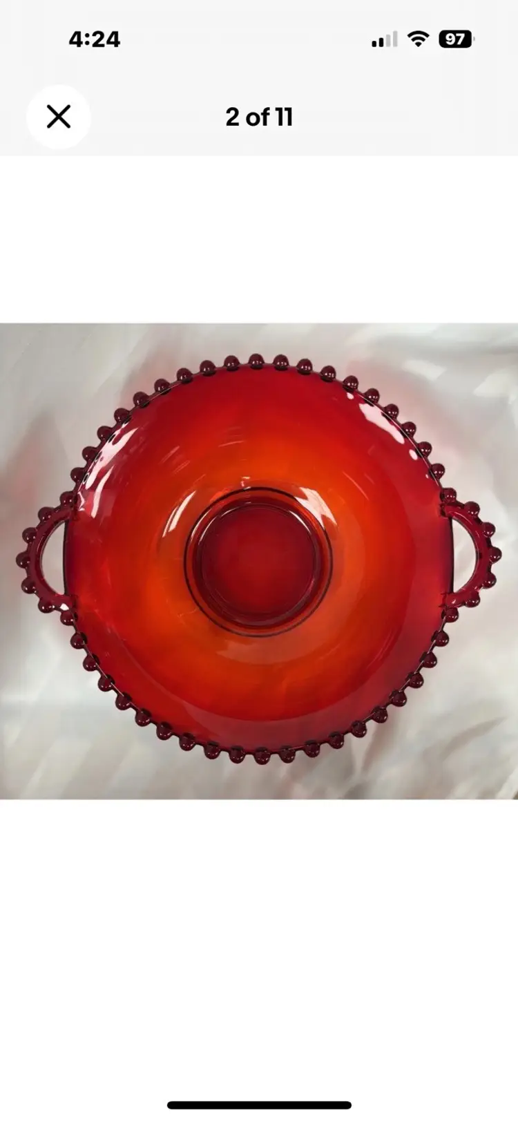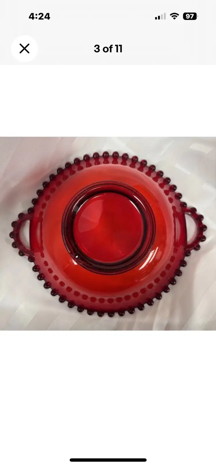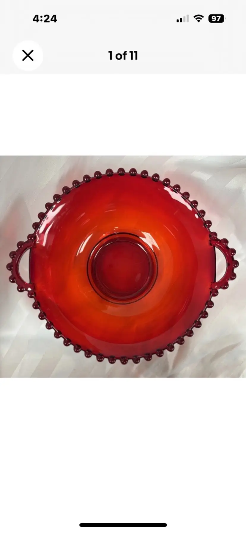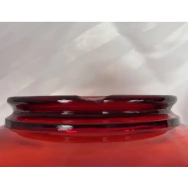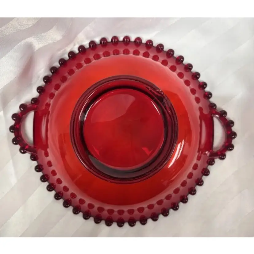 Add a touch of vintage elegance to your home with this stunning IMPERIAL GLASS Ruby Red Candlewick Bowl. Made in Ohio during the early 20th century, this decorative bowl is a beautiful example of the popular Candlewick pattern, featuring a glossy finish and a vibrant ruby red color that is sure to impress.
