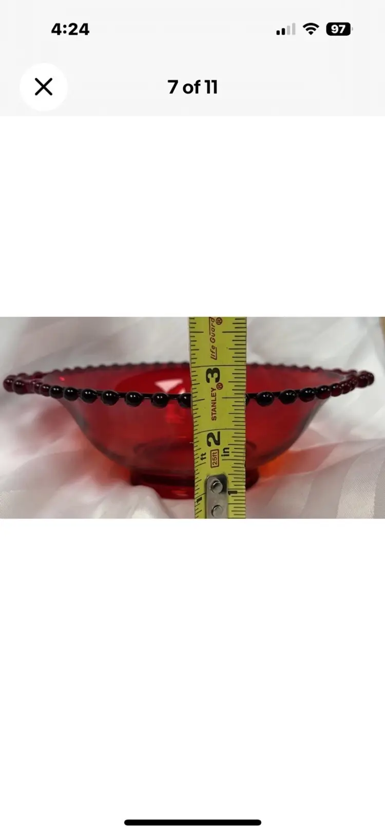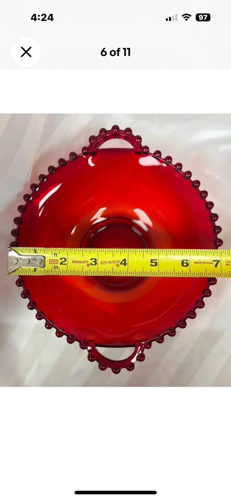 Crafted from high-quality glass, this original vintage piece measures 7 inches in diameter and stands 3 inches tall. Perfect for all occasions, it is a must-have for any collector or lover of unique and beautiful decorative items. Hand wash only to keep it looking its best.