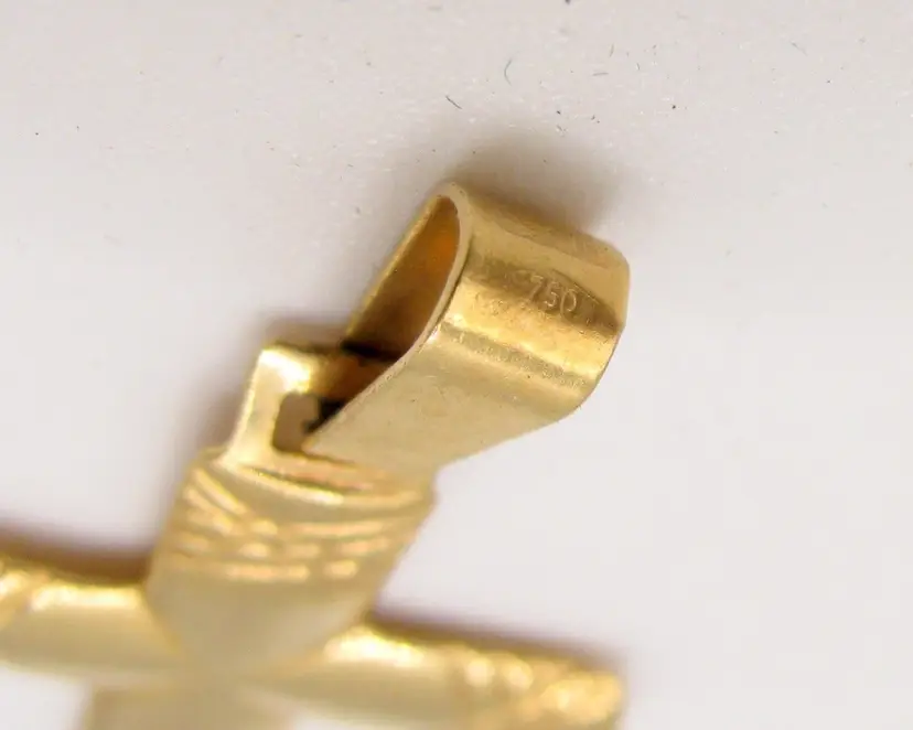The cross is marked 750 in an Italian like lozenge shape. Also tests 18k.