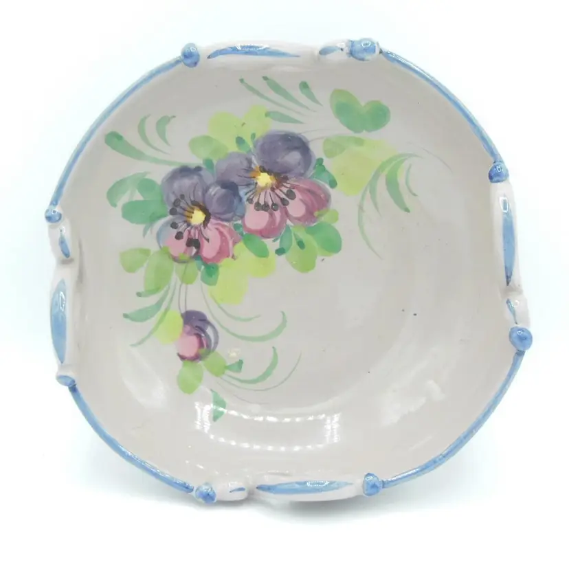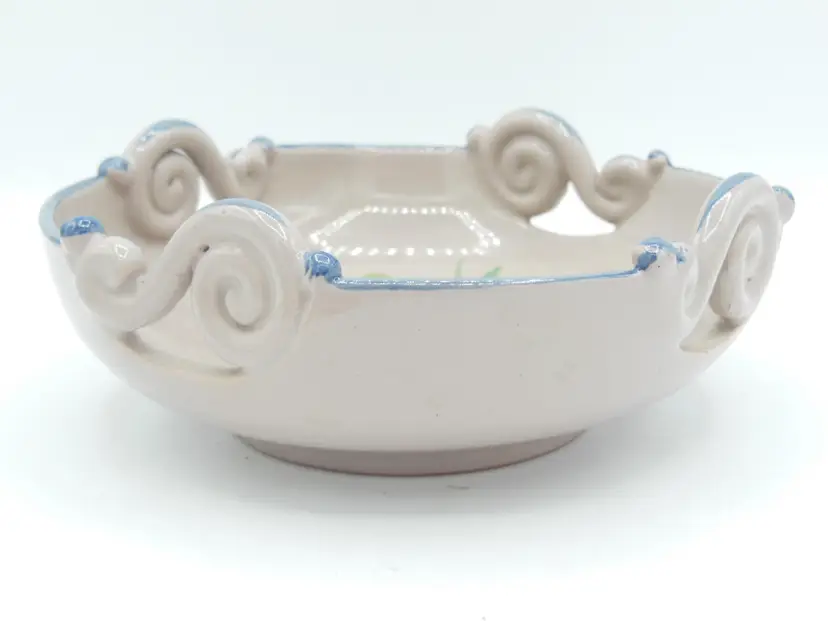 This is a Gorgeous and scarce, ITALIAN Art Pottery Small Bowl, Nut / Candy Dish, with Hand-Painted Flower Design and rim and reticulated side designs. It is signed '2123 ITALY' on the back. It measures: 5.5" diameter 2.25" high. It is in great condition. Please see all pics, as they are part of the description.