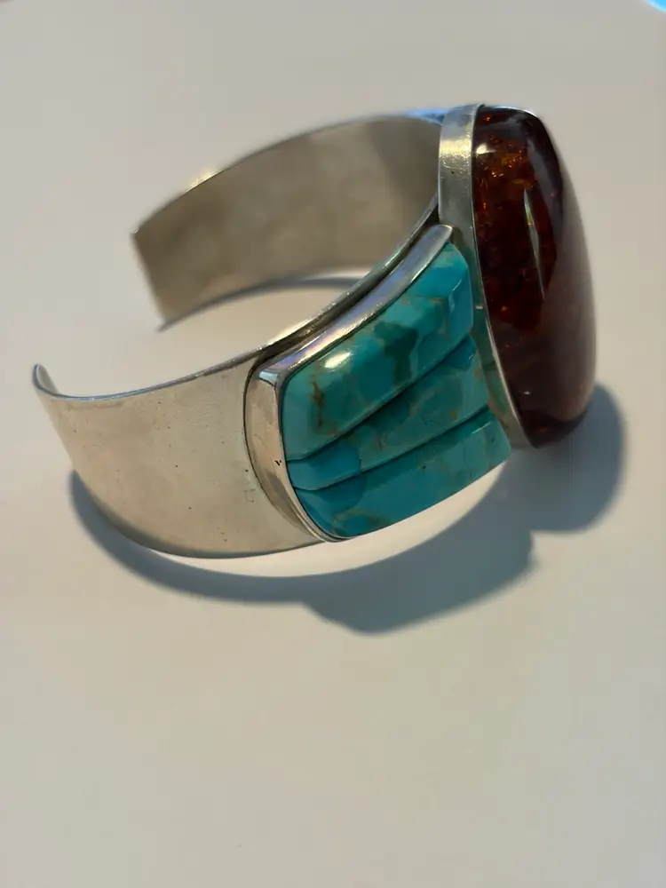 Gorgeous Jay King Turquoise and Amber Sterling Silver Cuff Bracelet. fits 7 to 7 1/2” wrist