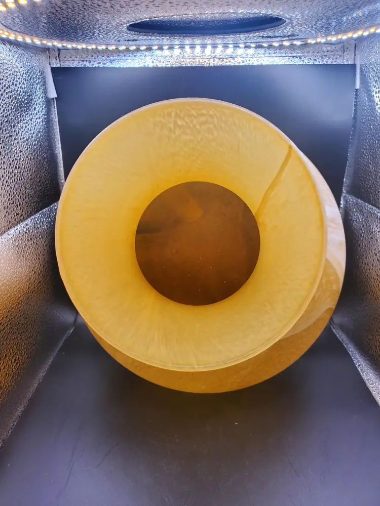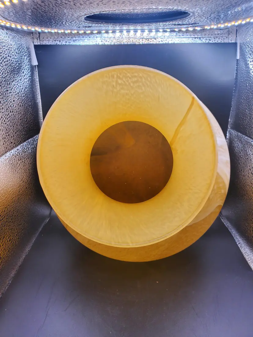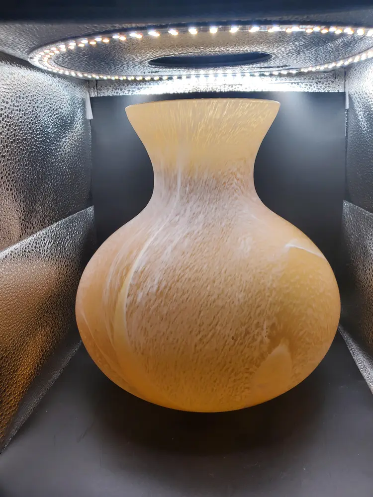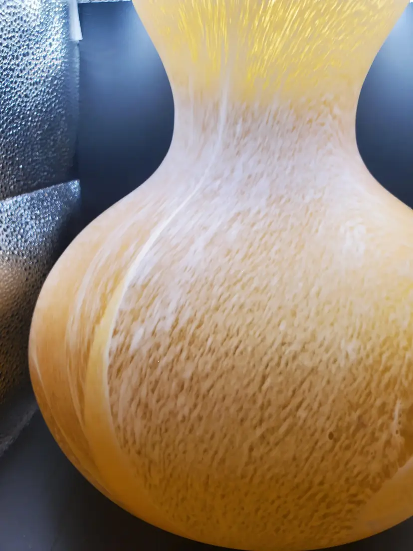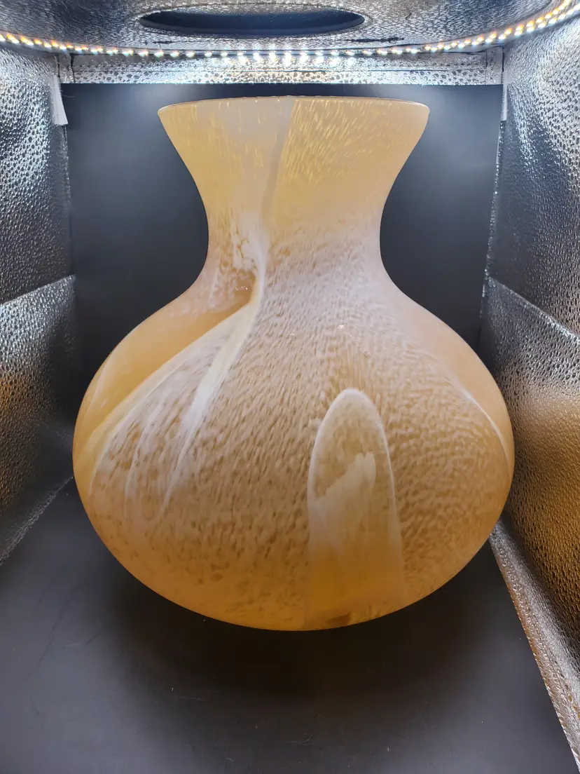 Beautiful handblown Murano Italy Vase. Gold with swirls of white. So pretty! 10" tall by 10" wide.