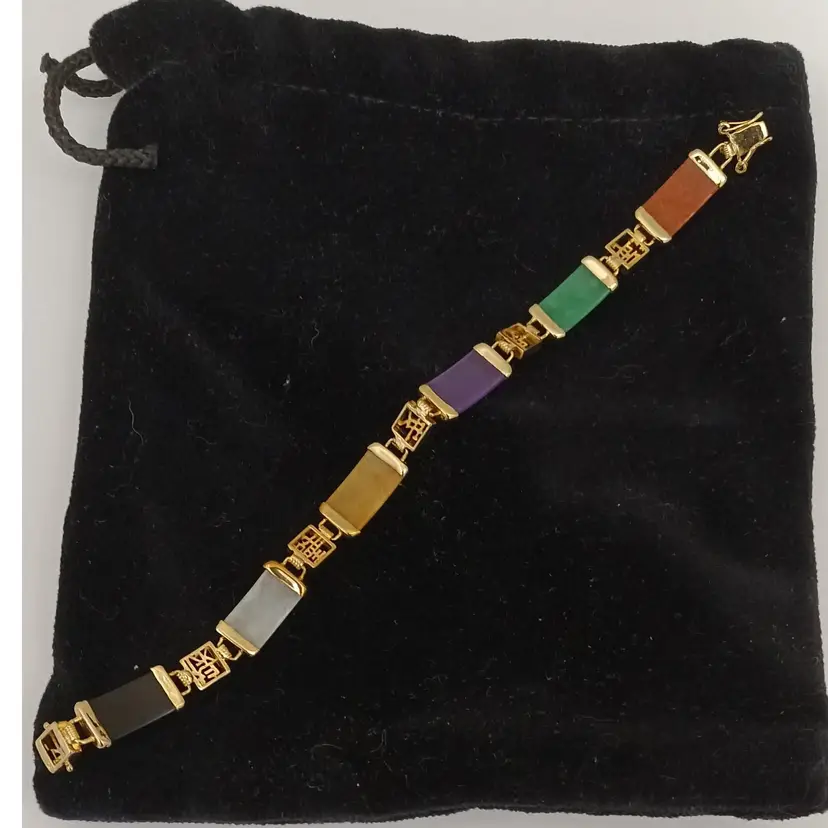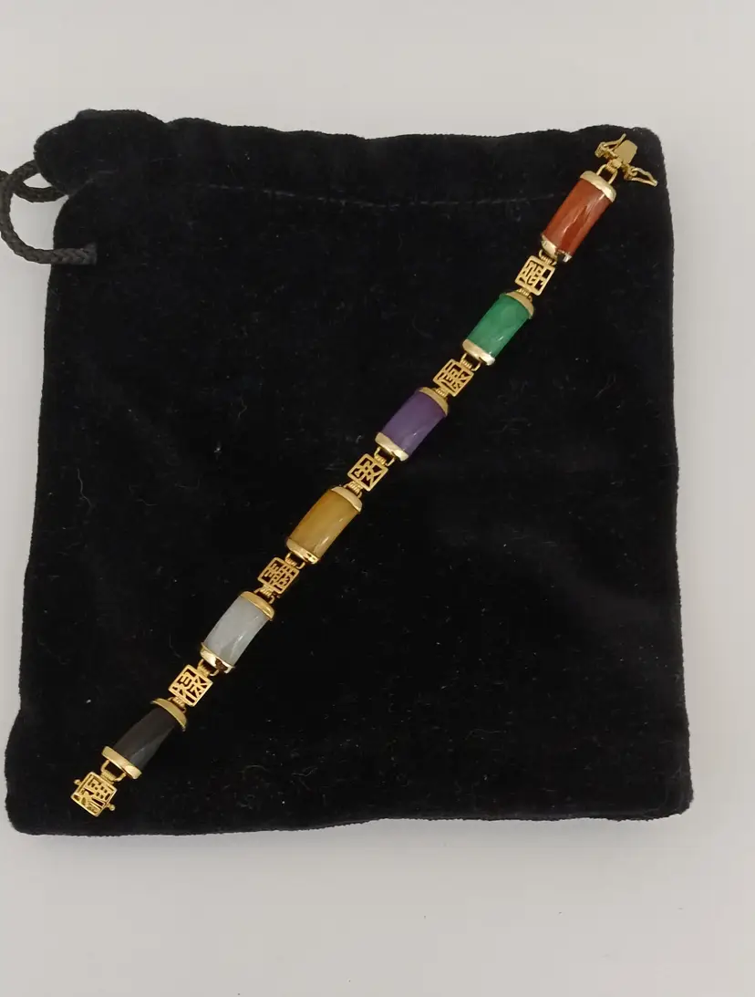 Gorgeous Multi Precious Stone Bracelet; Gold Filled With Safety Clasp; 8" long x .25" w
