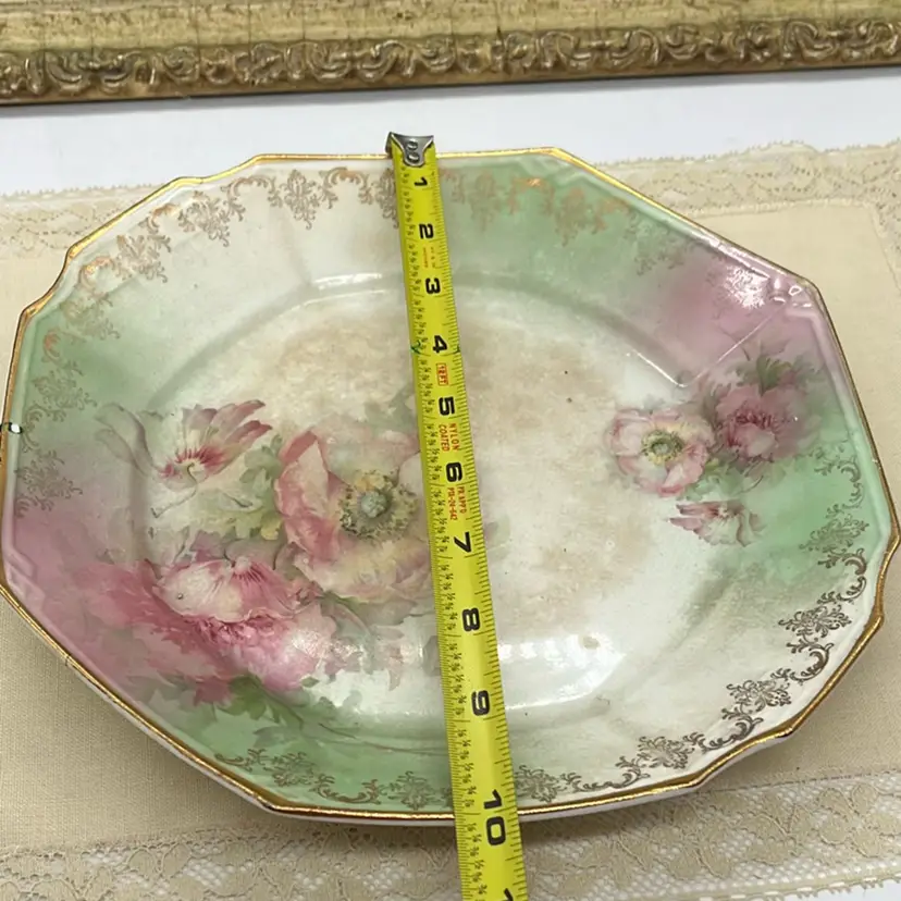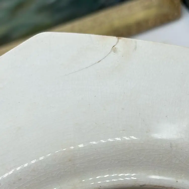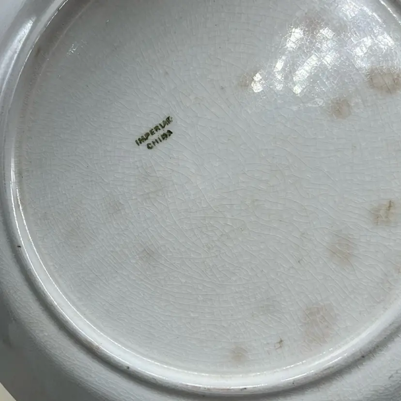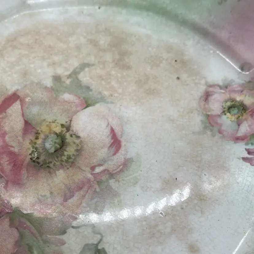 This is a BEAUTIFUL plate. It is being sold AS IS due to the crack on the edge which I photographed. It has beautiful crazing and discoloration and the floral designs is absolutely to die for. Perfect for a plate wall or to display in a vignette on your shelf. With its taller edges could work as a trinket dish or catch all.