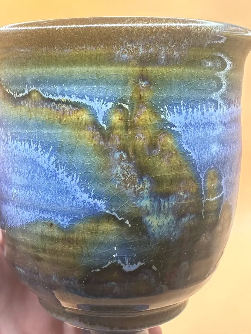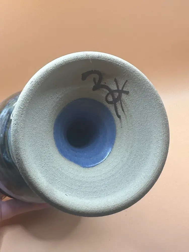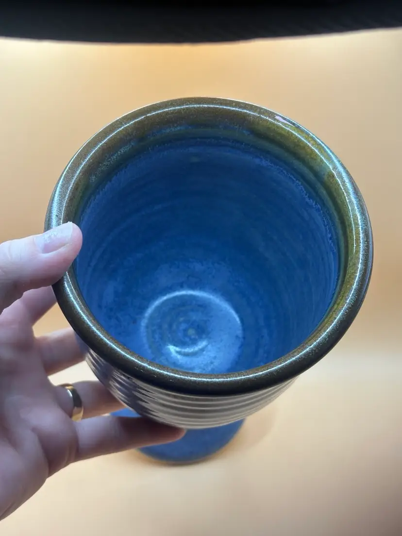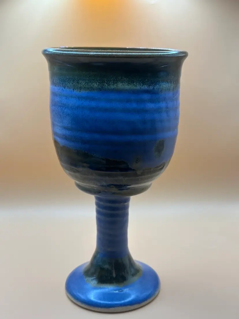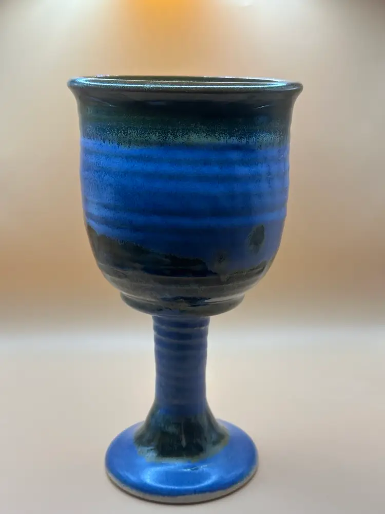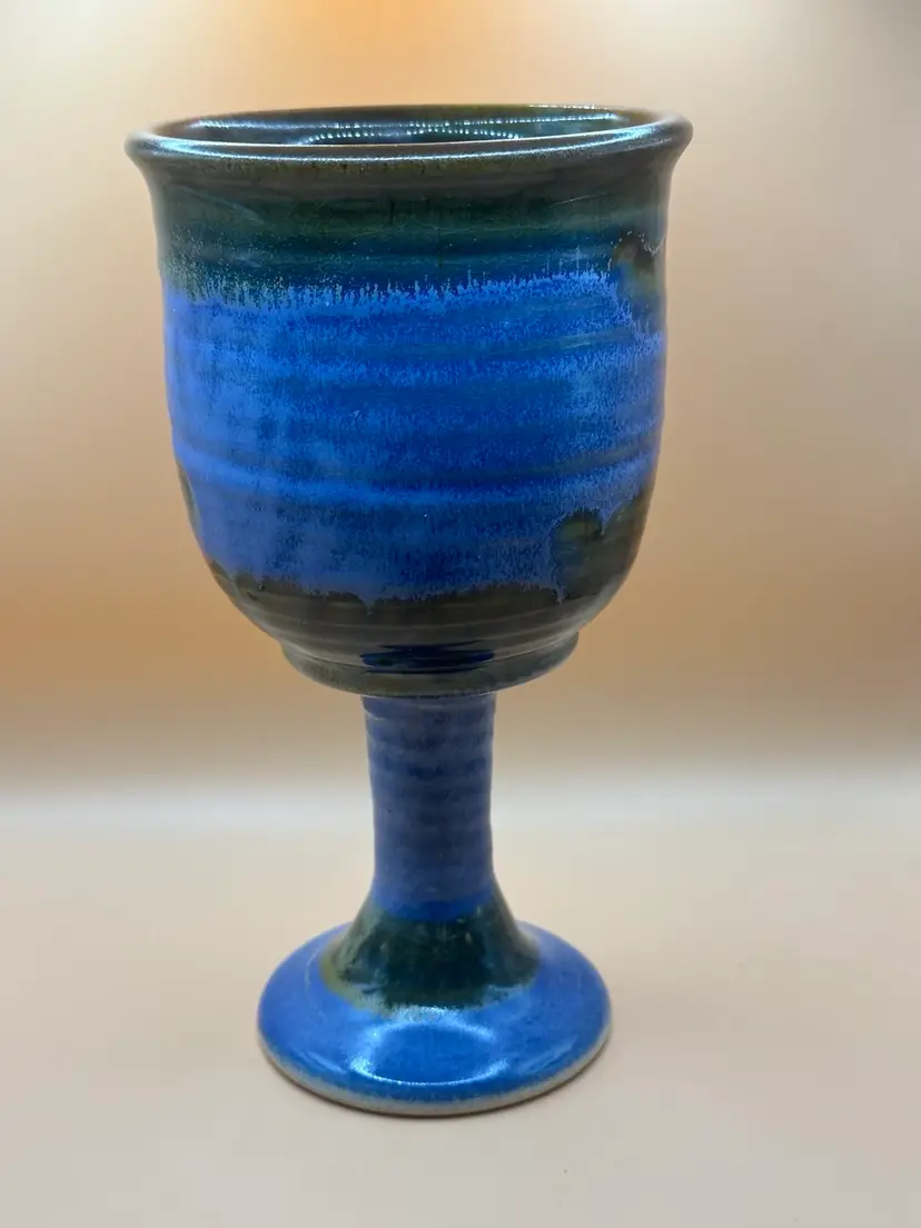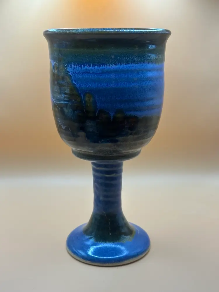 Featuring a signature by RH, it is a unique piece suitable for all occasions. The goblet is 8.5 inches tall and has a diameter of 4 inches, 4 inch depth. No chips or cracks.