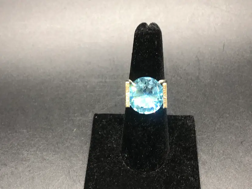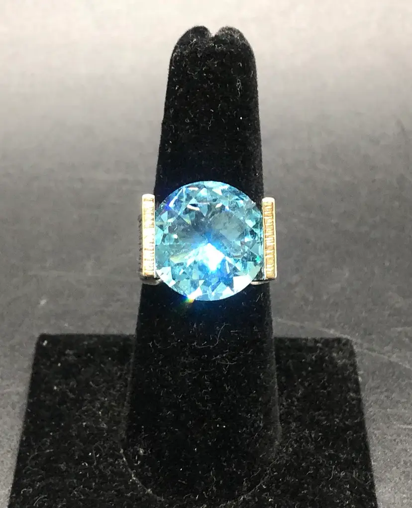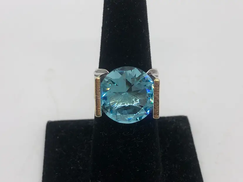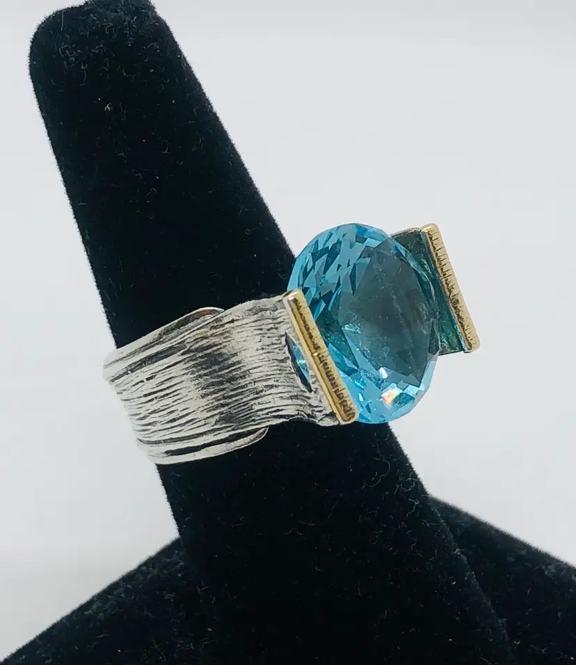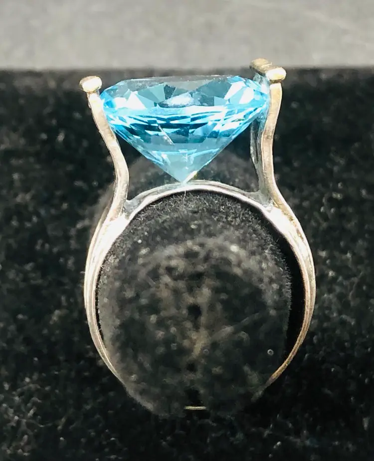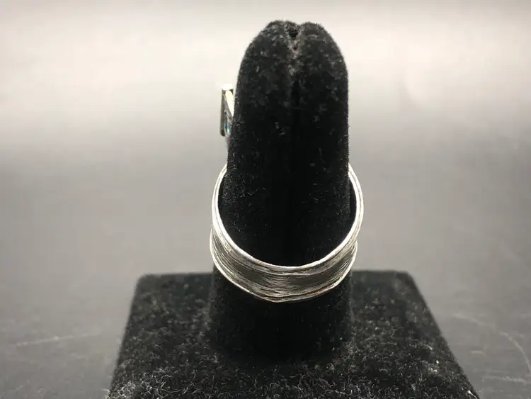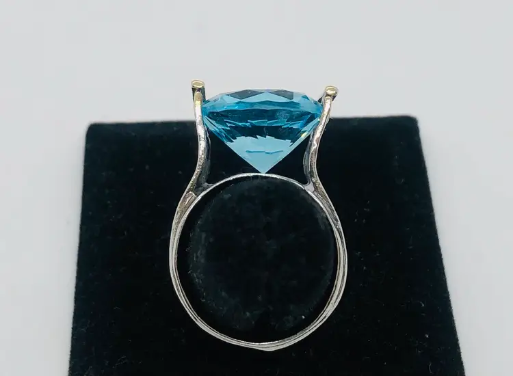 This product is a stunning vintage ring made in Israel from 925 sterling silver, featuring a beautiful aquamarine color stone. The ring is signed by the brand and is of size 8 and is signed Israel With its vintage charm and exquisite design, this ring is sure to be a standout piece in any jewelry collection. Made in Israel with high-quality materials, this ring is a unique and elegant choice for those who appreciate quality craftsmanship and timeless beauty.
