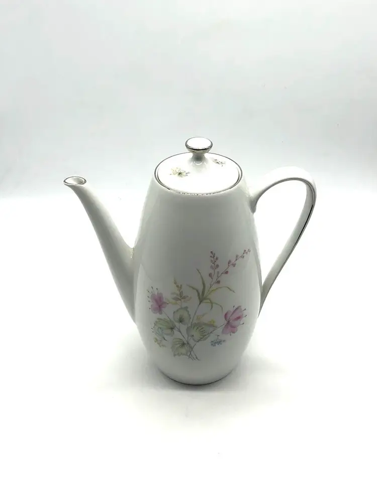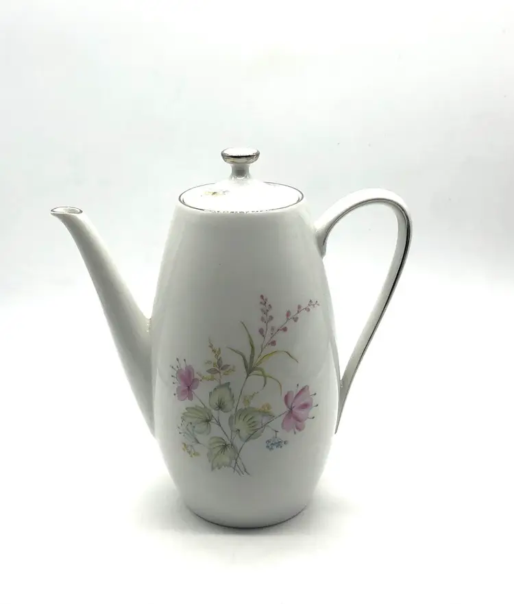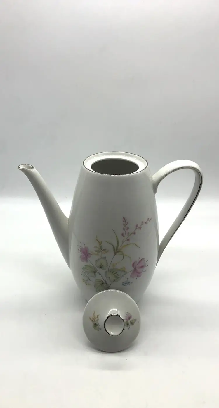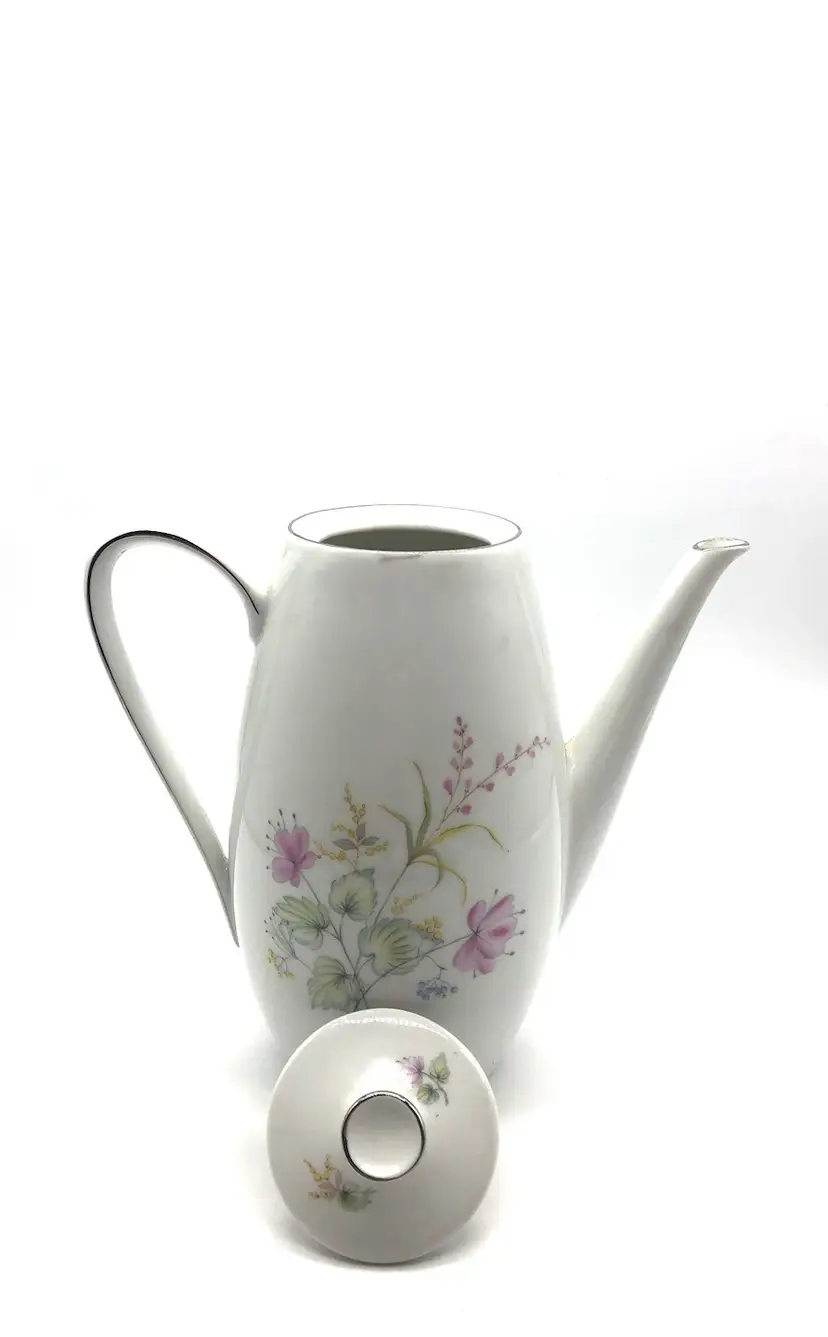 Gorgeous Winterling Rosiau Bavaria Hot Chocolate Tea Coffee Urn Pot Floral. No staining inside. It is 9.5 inches in height including the lid, 13.5 inches in circumference at widest and 3 inches in width at the bottom.