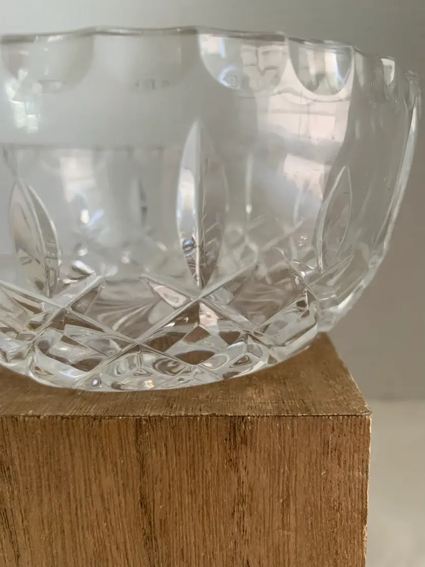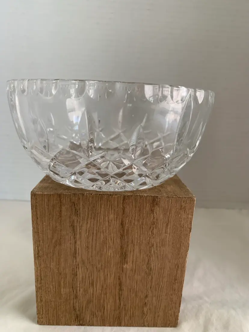 The Gorham Full Lead Crystal Lady Anne Round Fruit Candy Small Serving Bowl is a vintage piece from the late 20th century. Made in Germany, this clear crystal bowl features a glossy finish and a round shape with an item diameter of 5.5 inches. The Lady Anne pattern adds a touch of elegance, making it suitable for all occasions. This original Gorham serving bowl is a beautiful and delicate piece that requires hand wash only to maintain its quality.
