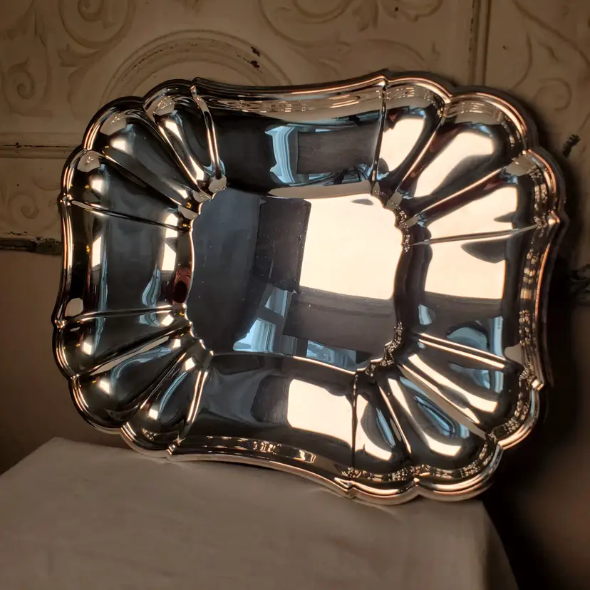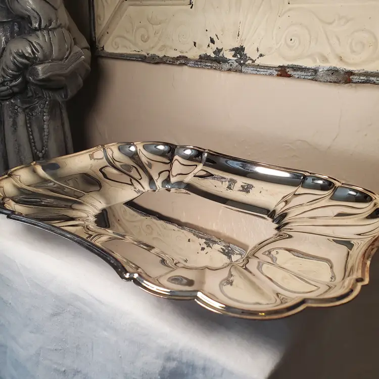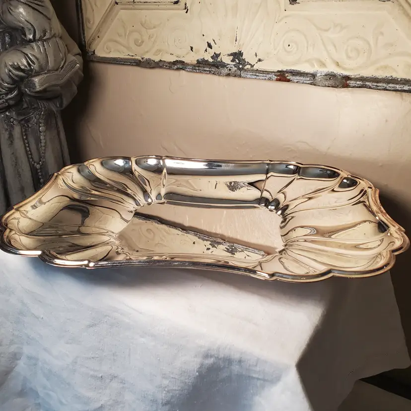Large silverplate platter. Gorgeous for traditional uses or display. In excellent condition. Approx 12 x 15".