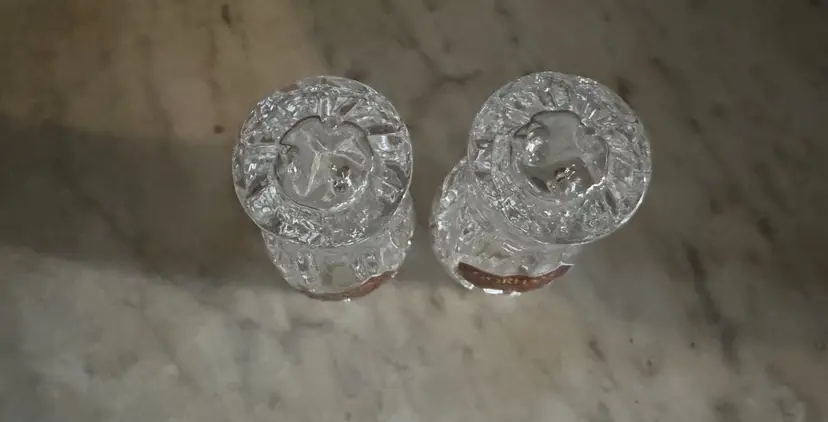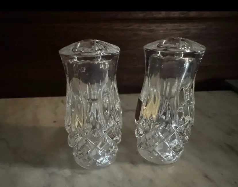 Add a touch of elegance to your dining experience with this stunning set of Gorham King Edward Salt and Pepper Shakers. Made of premium quality cut lead crystal, this 2-piece set features a glossy finish and a beautiful round shape. The shakers are refillable and come in a clear color that complements any table setting.