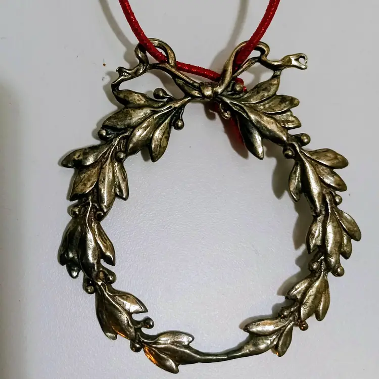 Elegant Sterling Silver Holly Wreath Ornament from Gorham Martha Stewart Ornaments Collection 2000; Wonderful Patina! Marked Gorham Sterling on Back; 3.25" Diameter; Limited Edition!