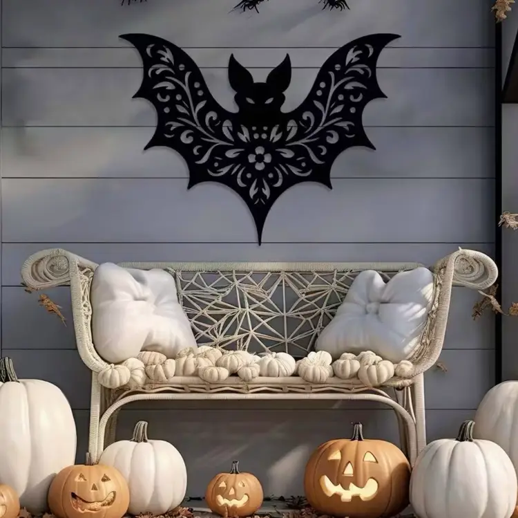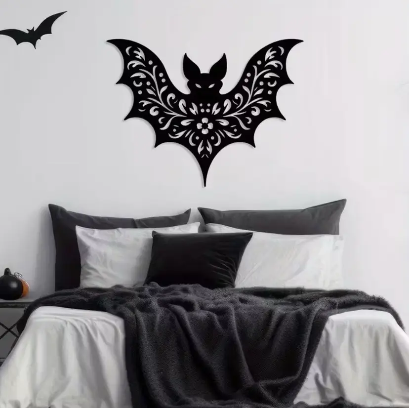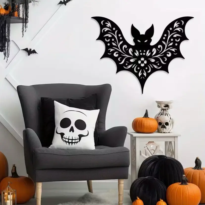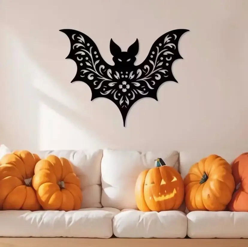 Metal Wall Art Sculpture, 11.81” Bat Decor, Entryway Decor, Iron Mural Indoor & Outdoor Home Patio Balcony Decor, Elegant Hanging Ornament, Housewarming Gift Halloween Gothic Bat Cool piece
