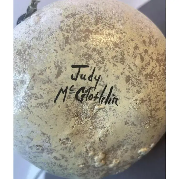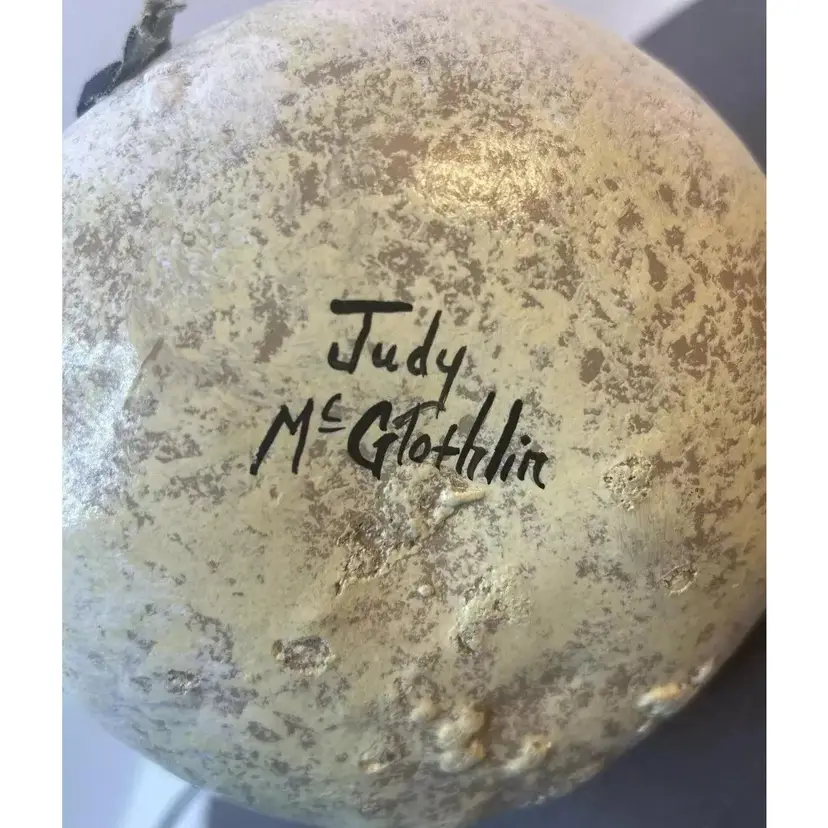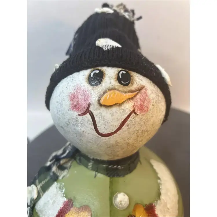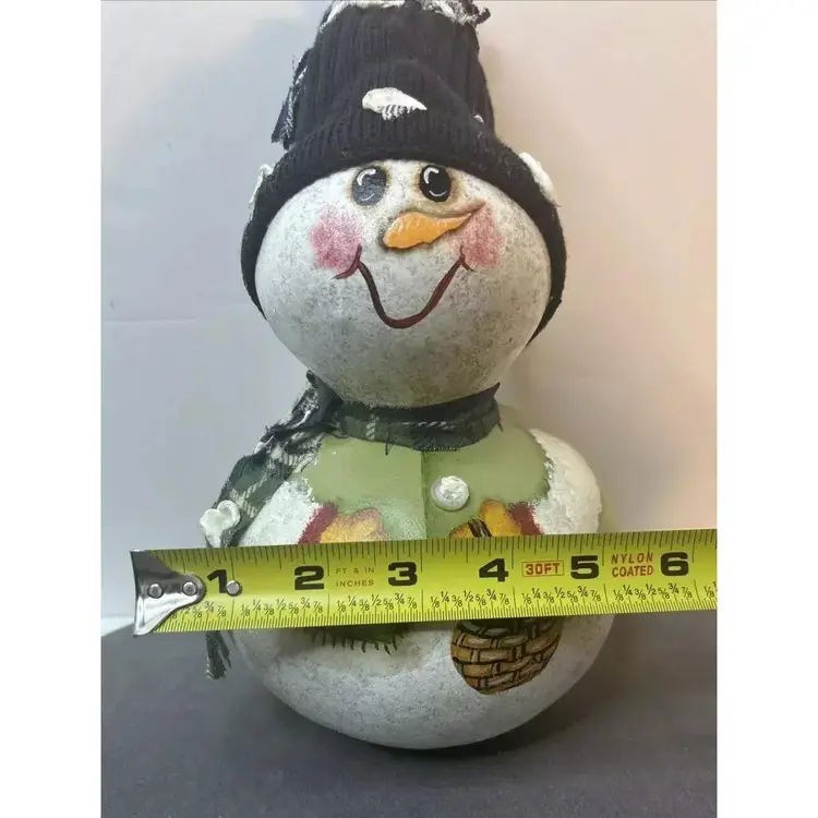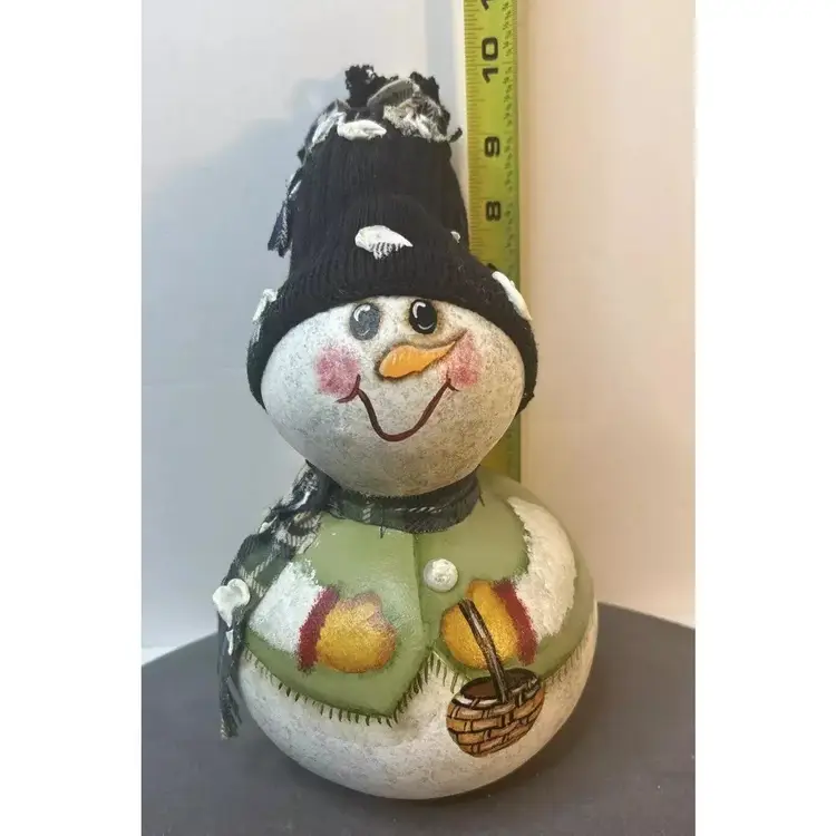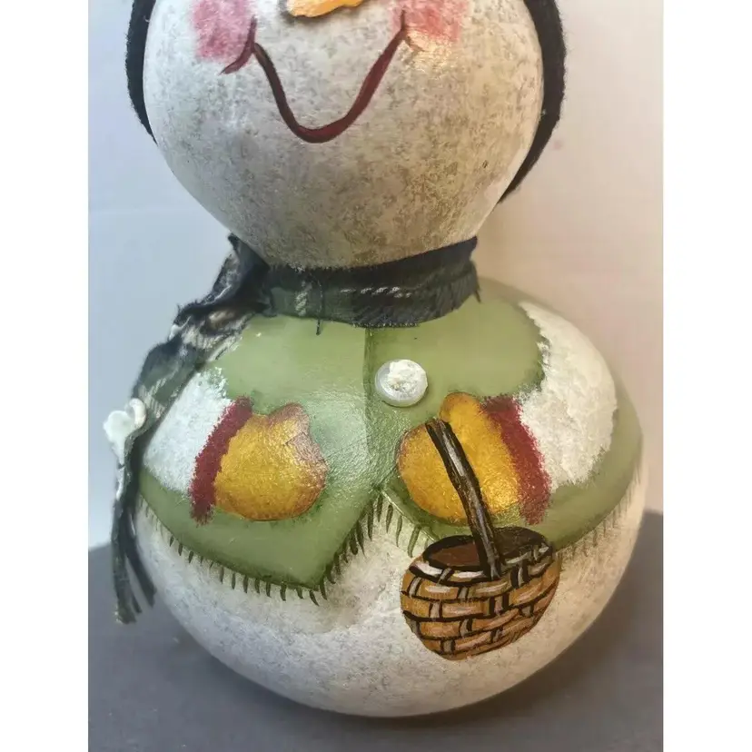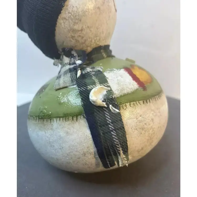 Add a touch of farmhouse country charm to your winter decorations with this beautiful hand-painted gourd snowman. Measuring 10 inches in height and 6 inches in width, this original piece is perfect for the holiday season. The snowman is intricately painted with a snow pattern and features a unique design that will make it a standout addition to your collection. Crafted by artist Judy McGlothin, this gourd snowman is a one-of-a-kind piece that is sure to impress. It is signed by the artist and is an original piece. Whether you're looking for a unique decoration for your home or a perfect gift for a loved one, this hand-made piece is sure to bring joy to any space. Gourd Snowman Hand Painted 10”x6” Decoration Christmas Winter Signed, is in excellent pre-owned condition with NO chips, cracks, discoloration or repairs. Please review all pictures for proper assessment of its excellent pre-owned condition.