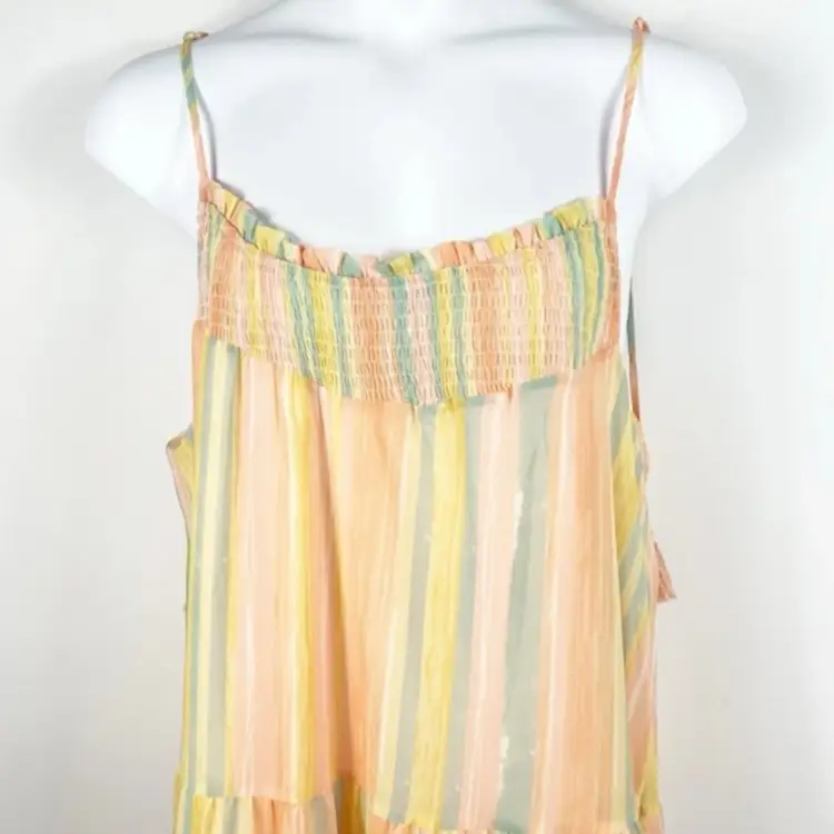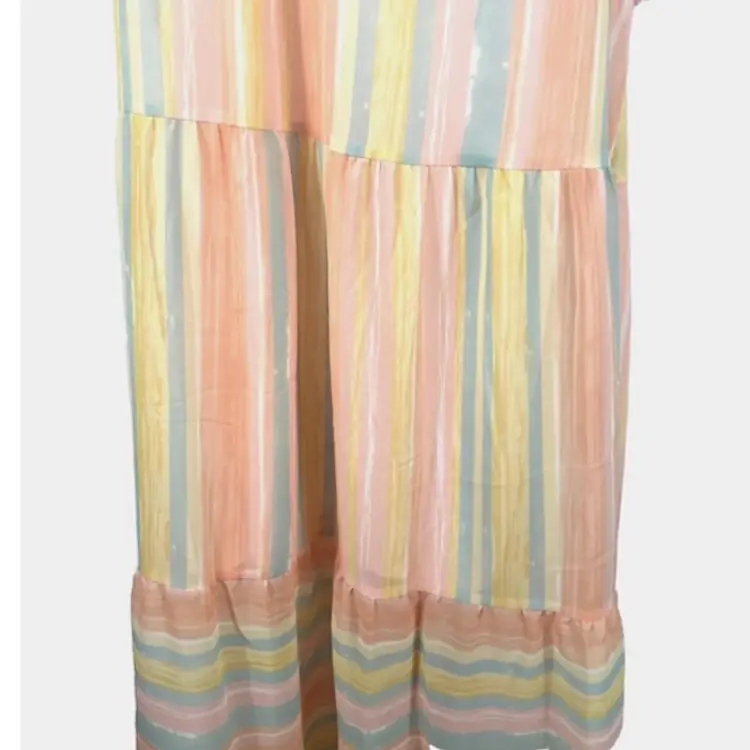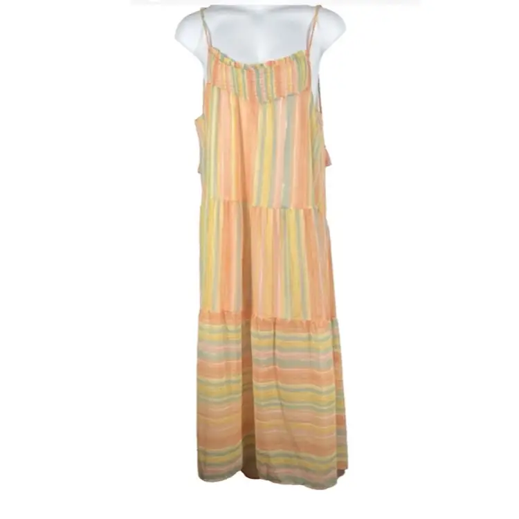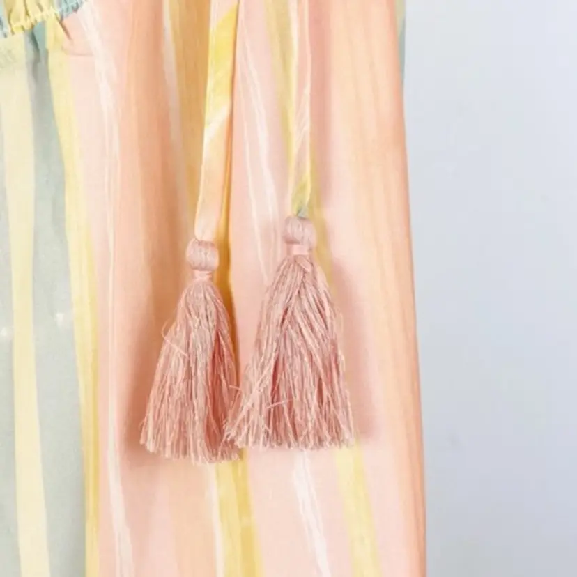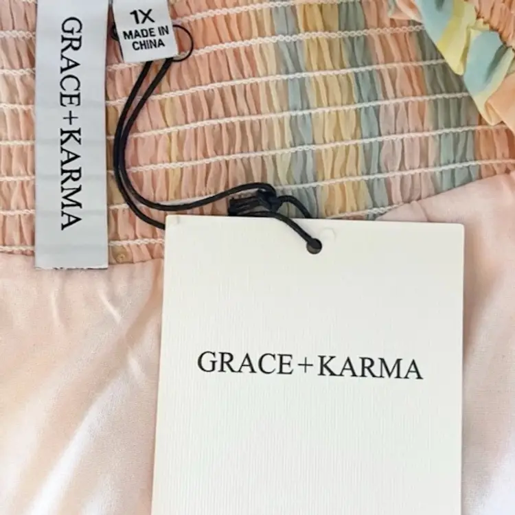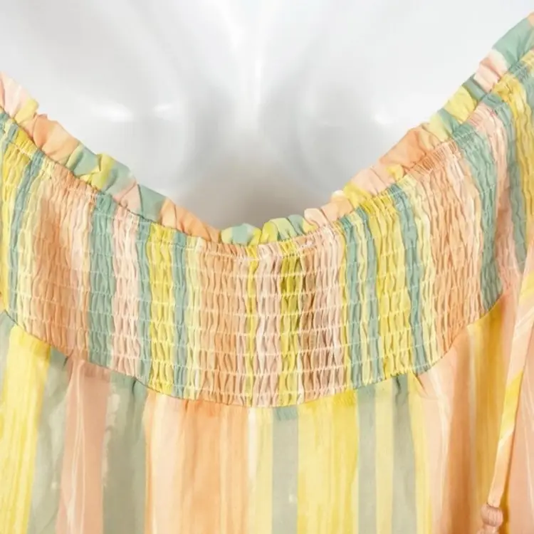 Grace + Karma Maxi Dress Size 1X Smocked Striped Colorful Tassel Boho Festival